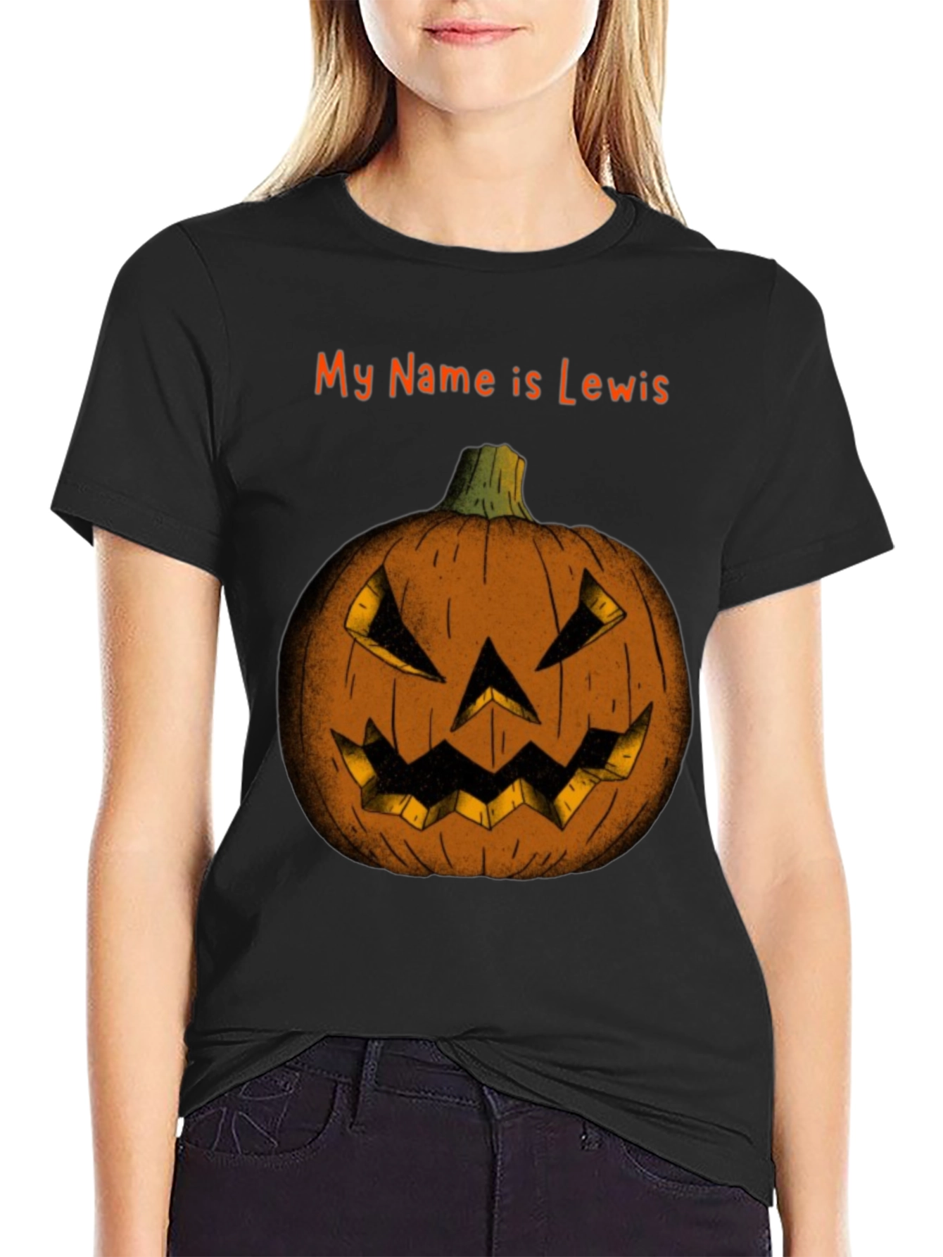 Get ready for Halloween with this unique tee! Featuring a spooky jack-o'-lantern graphic, this shirt is perfect for celebrating the spooky season in style. The text "My Name is Lewis" adds a personal touch. Made from soft, comfortable fabric, it's ideal for parties, trick-or-treating, or casual wear throughout October. Stand out from the crowd with this eye-catching and fun Halloween-themed shirt! A must-have for any Halloween enthusiast.