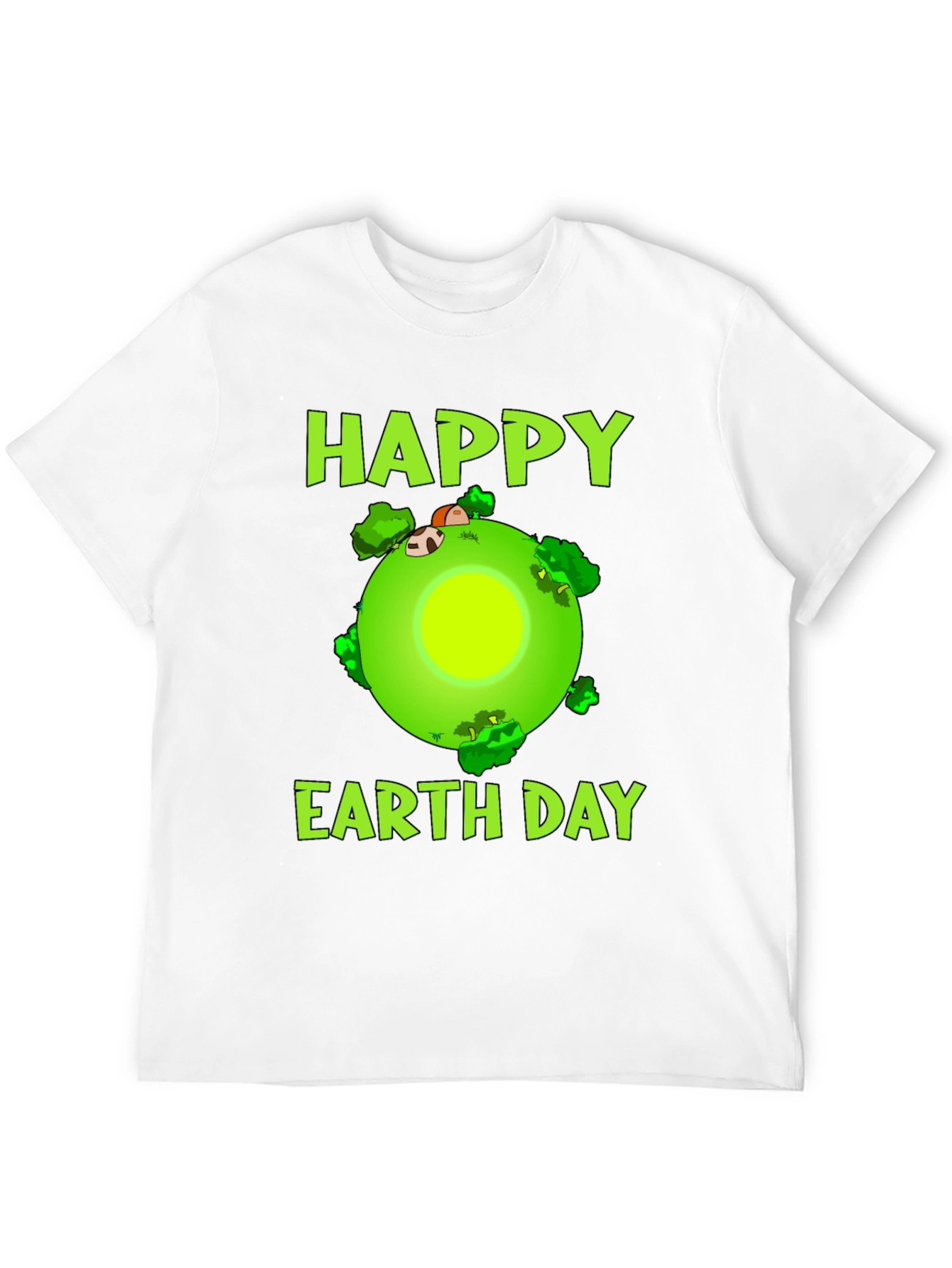 Show your love for our planet with this eye-catching Happy Earth Day graphic t-shirt. Made from comfortable fabric, this black tee features a vibrant, cartoon-style illustration of the Earth, complete with lush green trees and a cheerful design. The bright green "Happy Earth Day" text makes a bold statement. Perfect for celebrating Earth Day, environmental events, or simply expressing your commitment to sustainability. This t-shirt is a great addition to any casual wardrobe and a conversation starter about environmental awareness. Get yours today and wear your love for the planet!