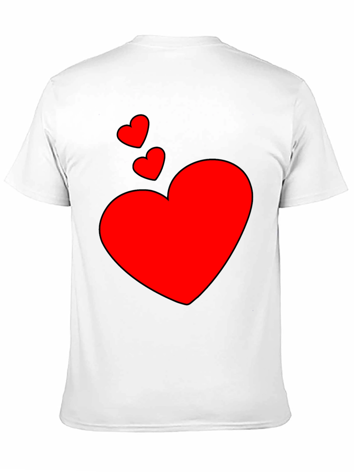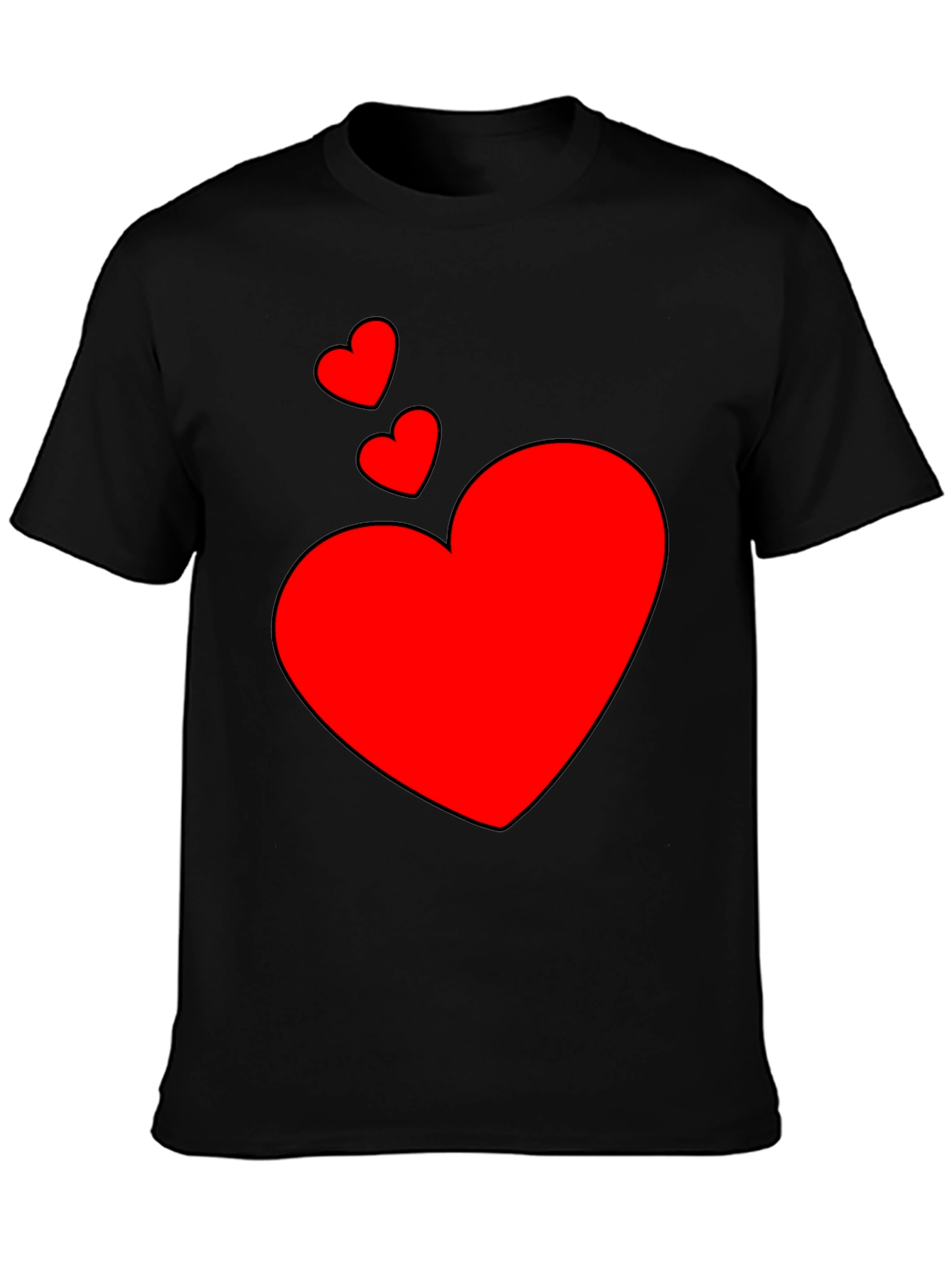 Show your love with this stylish black t-shirt featuring a vibrant red heart design. The shirt showcases a large heart with two smaller hearts above, creating a fun and eye-catching look. Made from what appears to be a soft, comfortable fabric, this tee is perfect for everyday wear. Whether you're going out with friends, running errands, or just relaxing at home, this heart print t-shirt will add a touch of charm to any outfit. Pair it with jeans or shorts for a casual and trendy ensemble. A great gift for Valentine's Day, anniversaries, or just to show someone you care. Get yours today!
