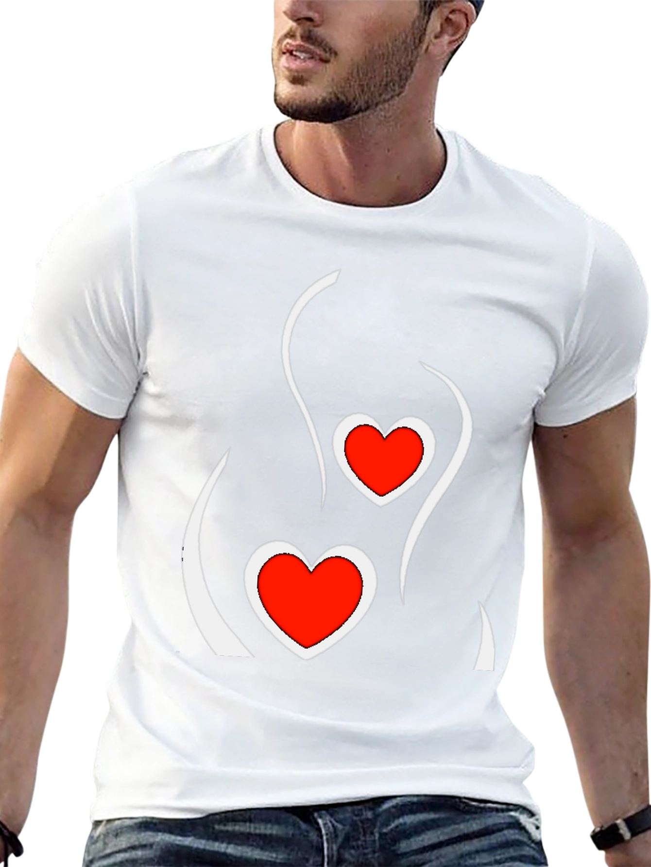 Show your love with this unique graphic tee. The shirt features a minimalist design with two red hearts framed by a stylish white silhouette. Made from a comfortable black fabric, this tee is perfect for casual wear, date nights, or expressing your affection. The striking contrast of the red hearts against the black backdrop creates a visually appealing statement piece. Soft to the touch and easy to wear, it is sure to become a favorite in your wardrobe. Ideal for anyone who loves modern design and wants to showcase their romantic side.