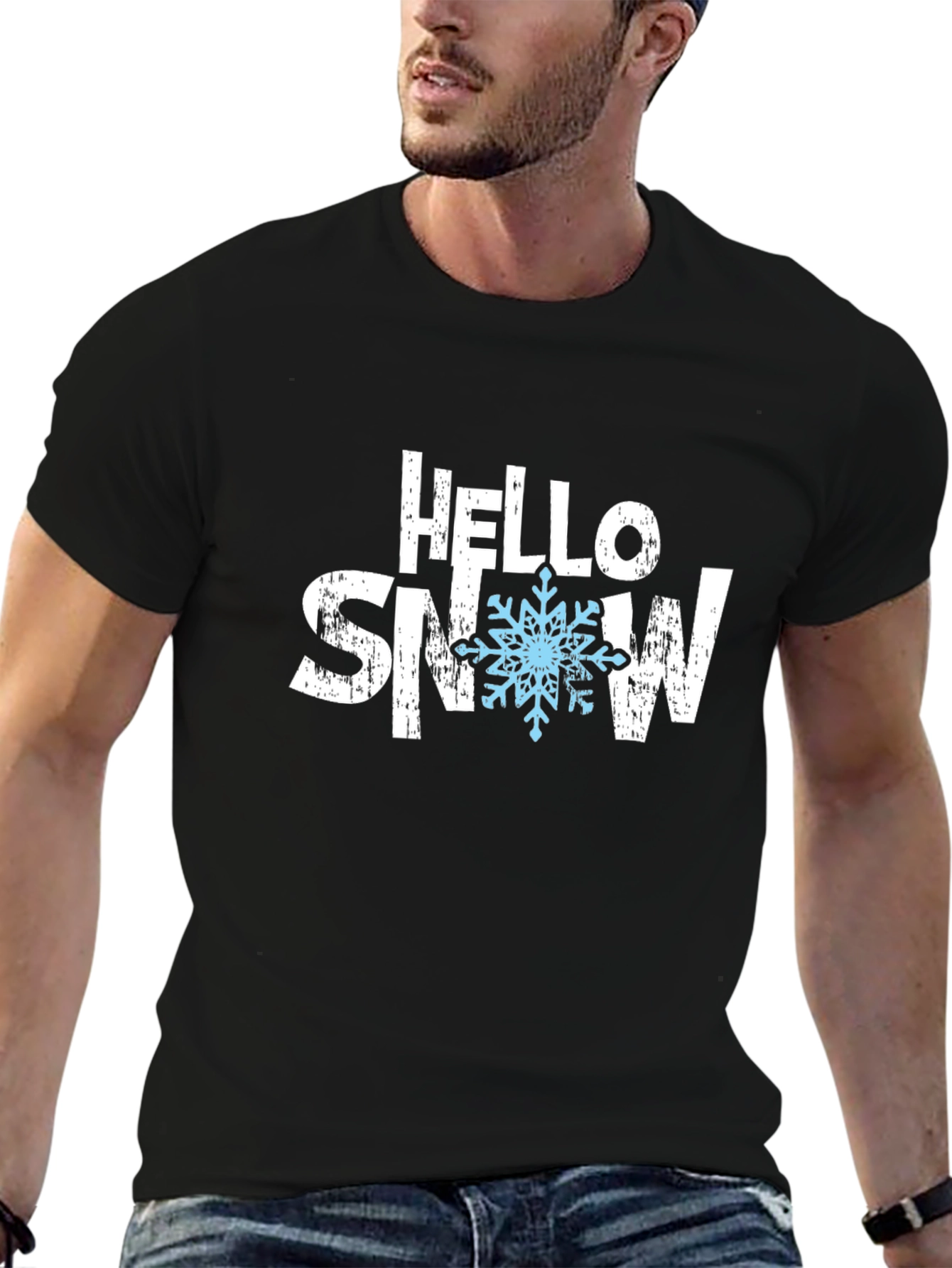 Embrace the winter spirit with this cool black graphic tee! Featuring the fun saying "Hello Snow" in a distressed white font with a striking light blue snowflake, this shirt is perfect for snow days or winter gatherings. The classic fit and soft fabric make it comfortable for all-day wear. Pair it with your favorite jeans or leggings for a casual and stylish look. Get ready to celebrate the season in this festive and eye-catching tee! It would make a great gift for the winter season.