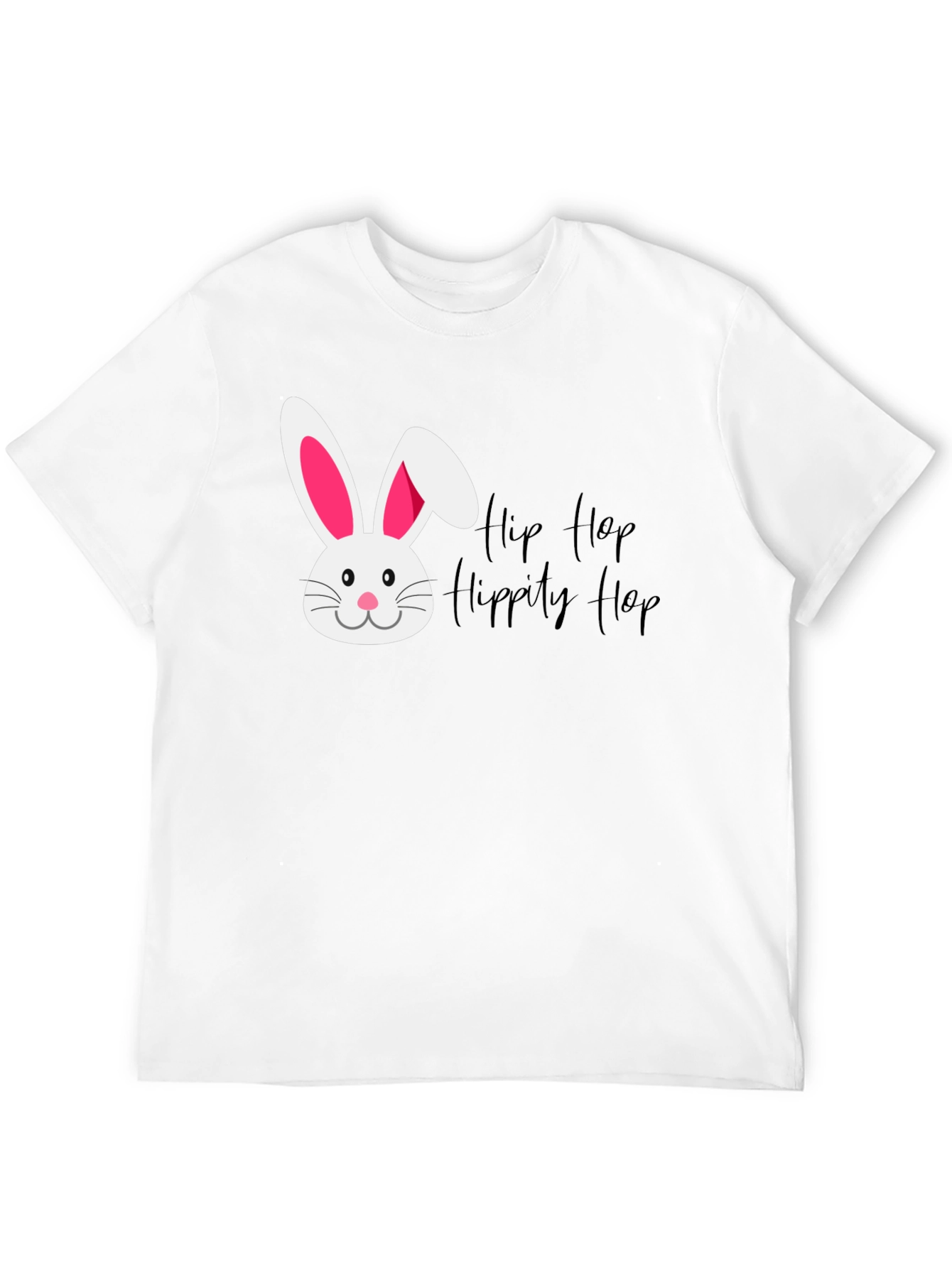 Celebrate Easter in style with this fun and festive black t-shirt. Featuring a cute bunny face and the playful phrase 'Hip Hop Hippity Hop', this tee is perfect for Easter egg hunts, family gatherings, or just showing off your holiday spirit. Made from a comfortable, breathable fabric, this shirt is designed for all-day wear. Its classic fit makes it a versatile addition to any wardrobe. Get ready to hop into Easter with this adorable and stylish t-shirt!