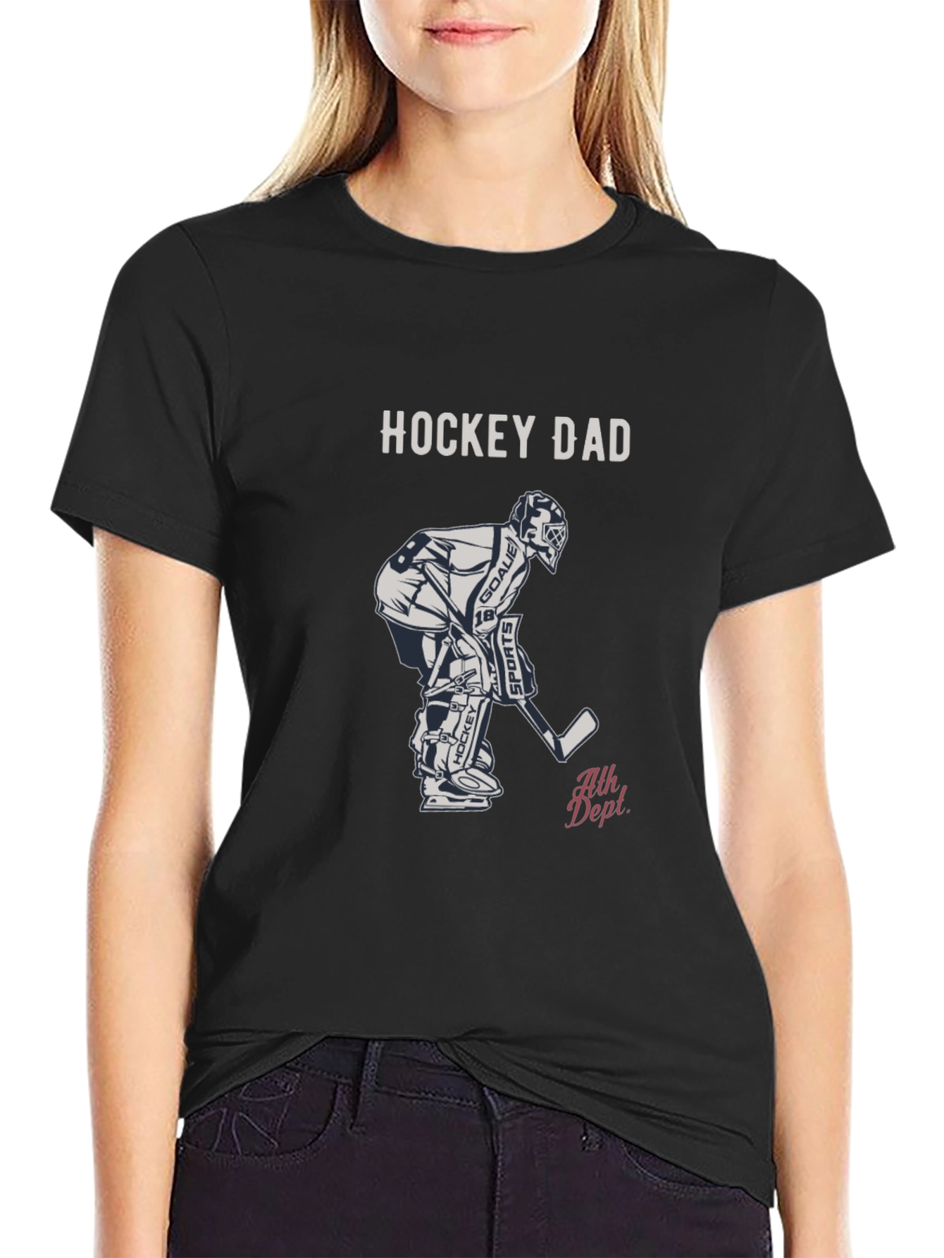 Show your love for hockey with this classic Hockey Dad T-shirt. The design features a detailed graphic of a hockey goalie in action, complete with vintage-style lettering. Made from a soft, comfortable fabric, this tee is perfect for game days, practices, or casual wear. It's a great way to represent your support for your favorite player or team. Whether you are at the rink or relaxing at home, this Hockey Dad shirt is a must-have for any dedicated hockey parent.