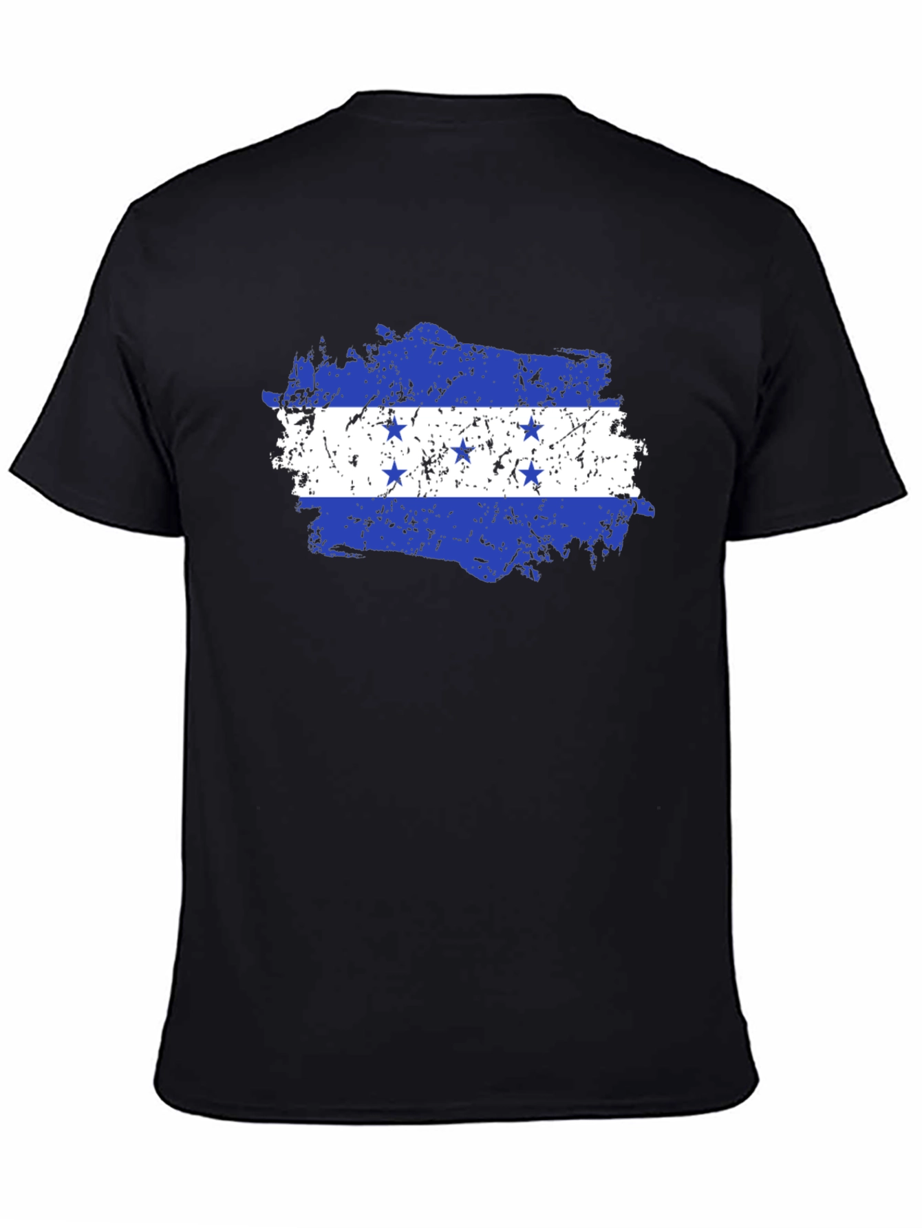 Show your Honduran pride with this stylish black t-shirt. The shirt features a distressed-style Honduras flag graphic on the chest. The flag is rendered with a unique grunge texture, adding a vintage touch. This tee is made from a soft, comfortable fabric, perfect for everyday wear or showing support at sporting events. The classic crewneck design ensures a relaxed fit. Whether you're celebrating your heritage or looking for a unique gift, this Honduras flag t-shirt is a great choice. Pair it with jeans for a casual look, or dress it up with chinos for a night out. Makes a great gift!