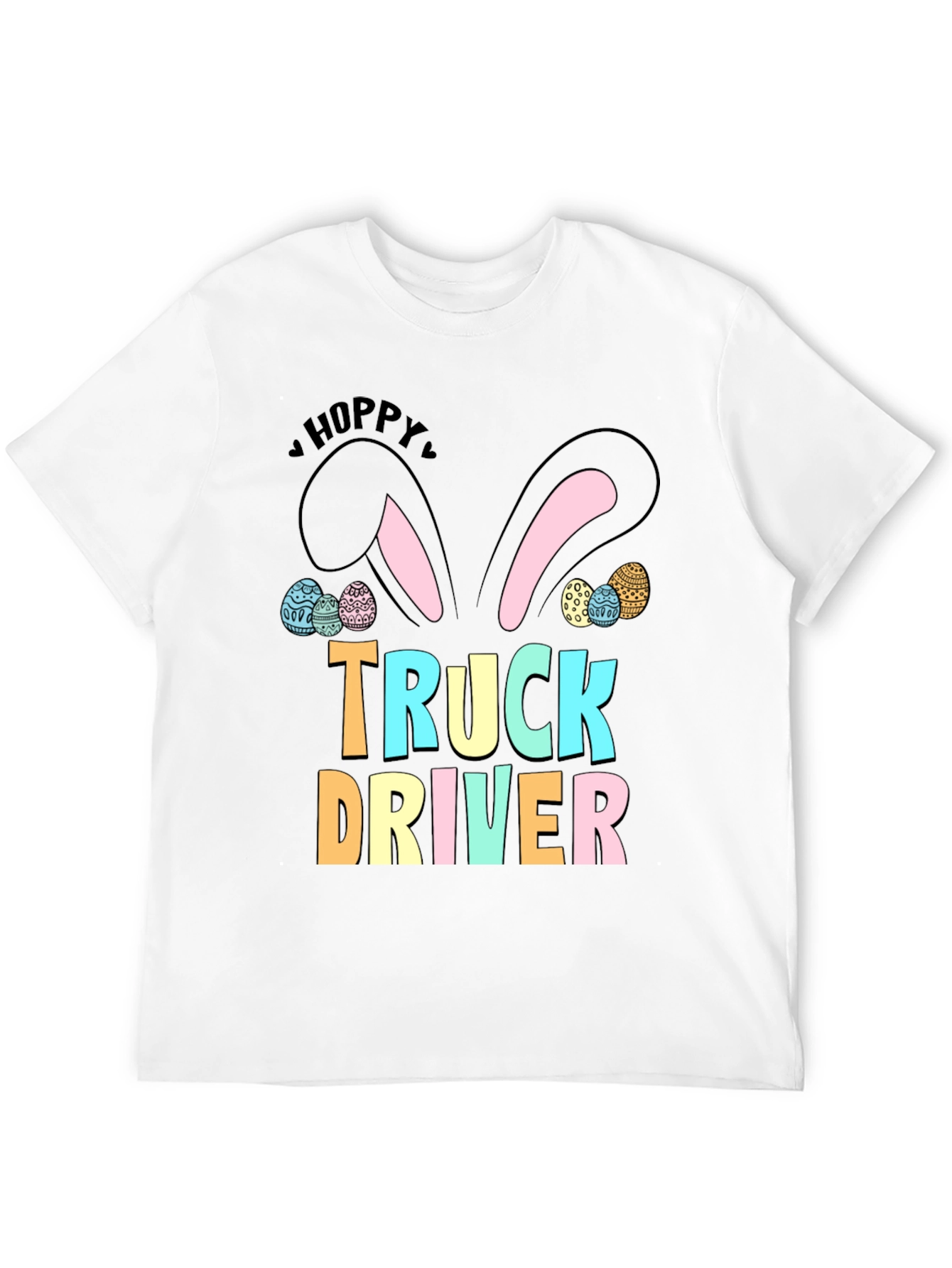 Celebrate Easter in style with this fun and festive t-shirt. Featuring a cute bunny ears design and colorful Easter eggs, this shirt is perfect for truck drivers who want to show their holiday spirit. The words "TRUCK DRIVER" are boldly displayed in a playful font, making it a unique and eye-catching statement piece. Made from comfortable materials, this t-shirt is ideal for casual wear during Easter gatherings or everyday activities. Show off your love for driving and the holiday season with this must-have Easter-themed t-shirt.