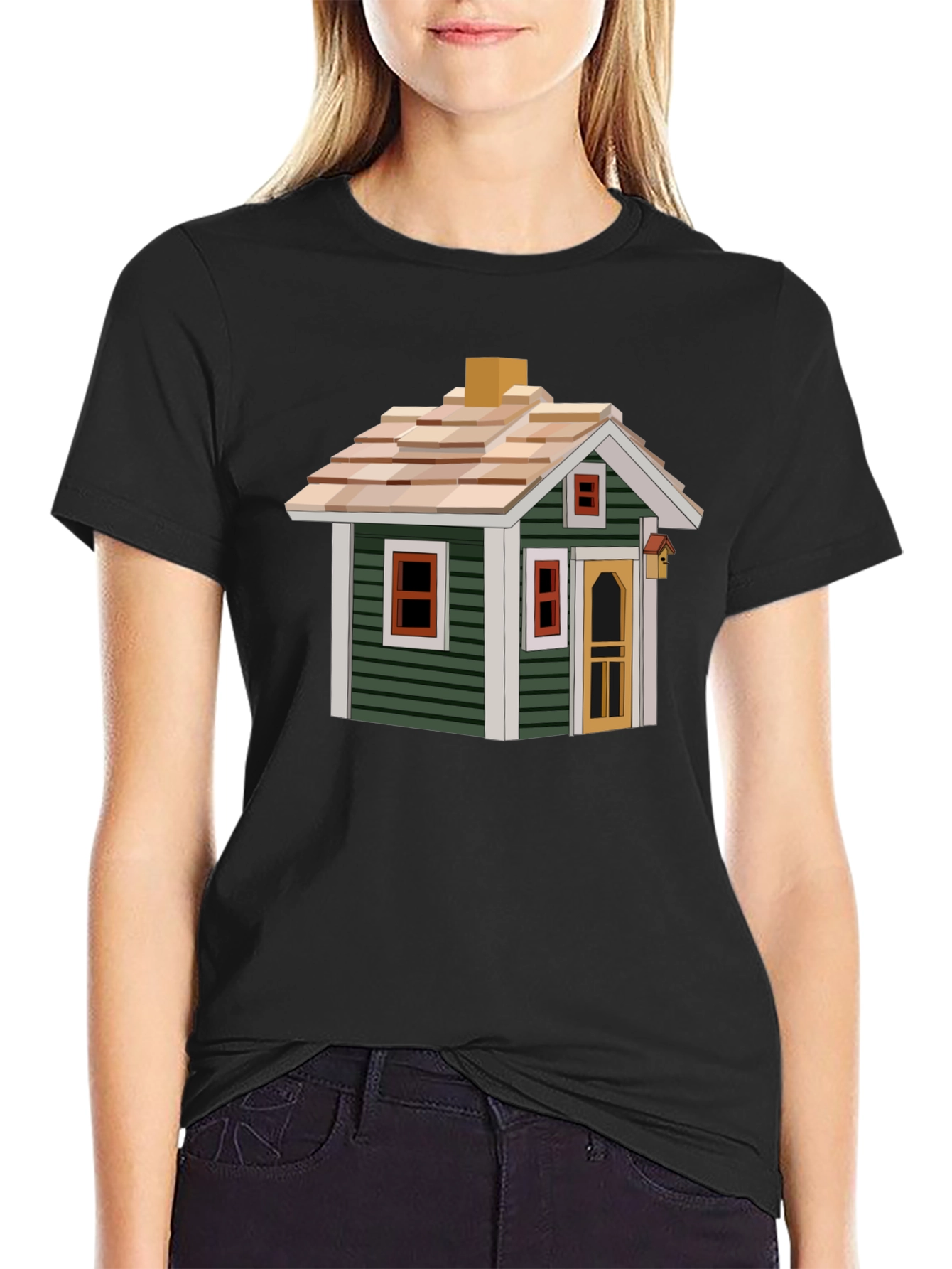 Showcase your unique style with this eye-catching t-shirt. Featuring a cartoonish, illustrated design of a charming house, this tee is sure to turn heads. The house is colored in green, white, and brown, with windows and a door, evoking a cozy and inviting feeling. Made from a soft, breathable fabric, it offers a comfortable fit for everyday wear. Perfect for casual outings, weekend adventures, or simply lounging at home, this t-shirt is a versatile addition to any wardrobe. Express your individuality and add a touch of whimsy to your look with this distinctive tee. Get yours today and let your style speak volumes!