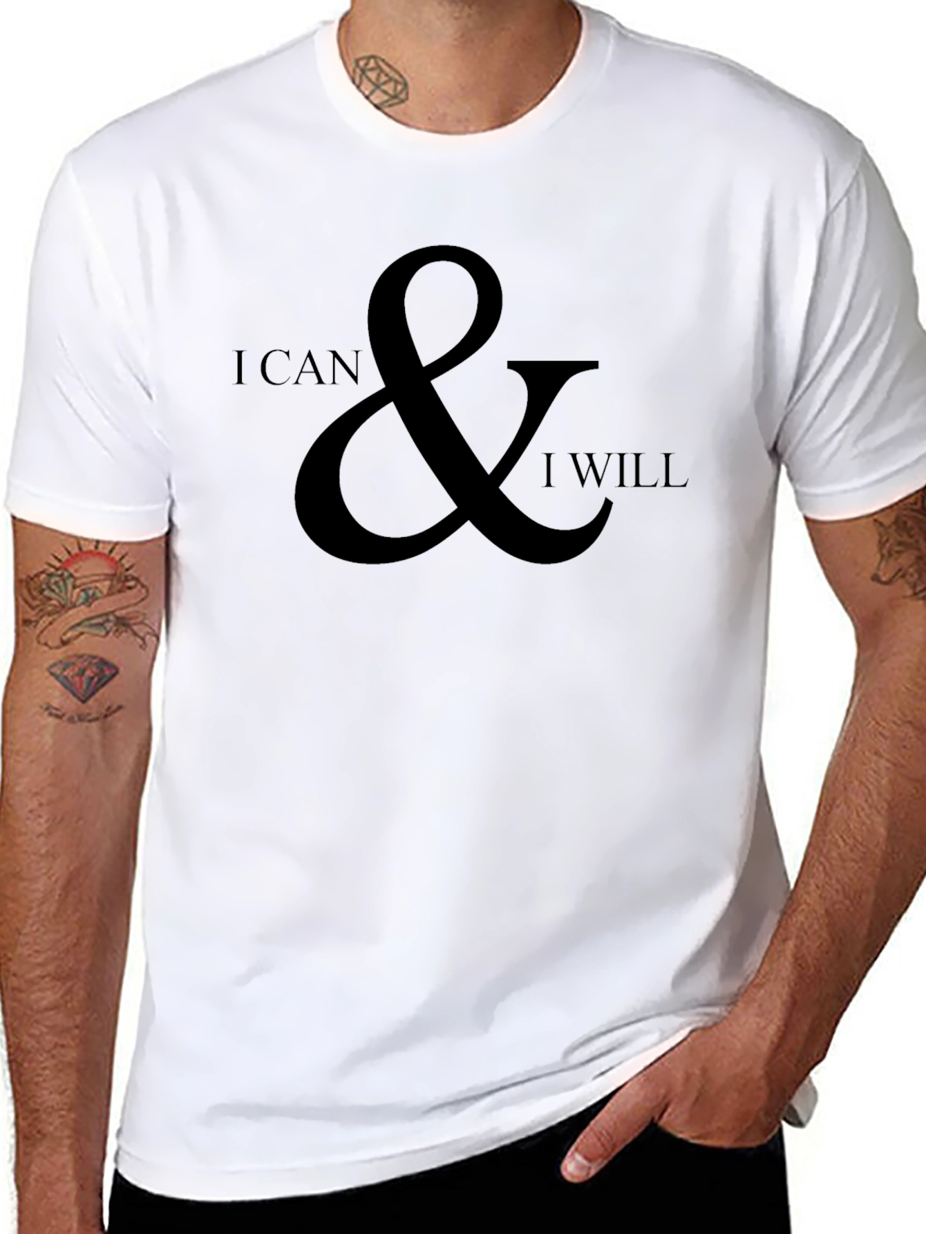 This classic black t-shirt features a bold and inspiring graphic print that reads "I CAN & I WILL." The clean, minimalist design adds a touch of motivation to your everyday wardrobe. Made from a soft and comfortable fabric, this tee offers a relaxed fit, perfect for casual outings, workouts, or simply lounging at home. Its versatile design makes it easy to pair with jeans, shorts, or leggings for a stylish and effortless look. Wear your determination with pride and make a statement with this empowering t-shirt. Add it to your rotation and get motivated today.