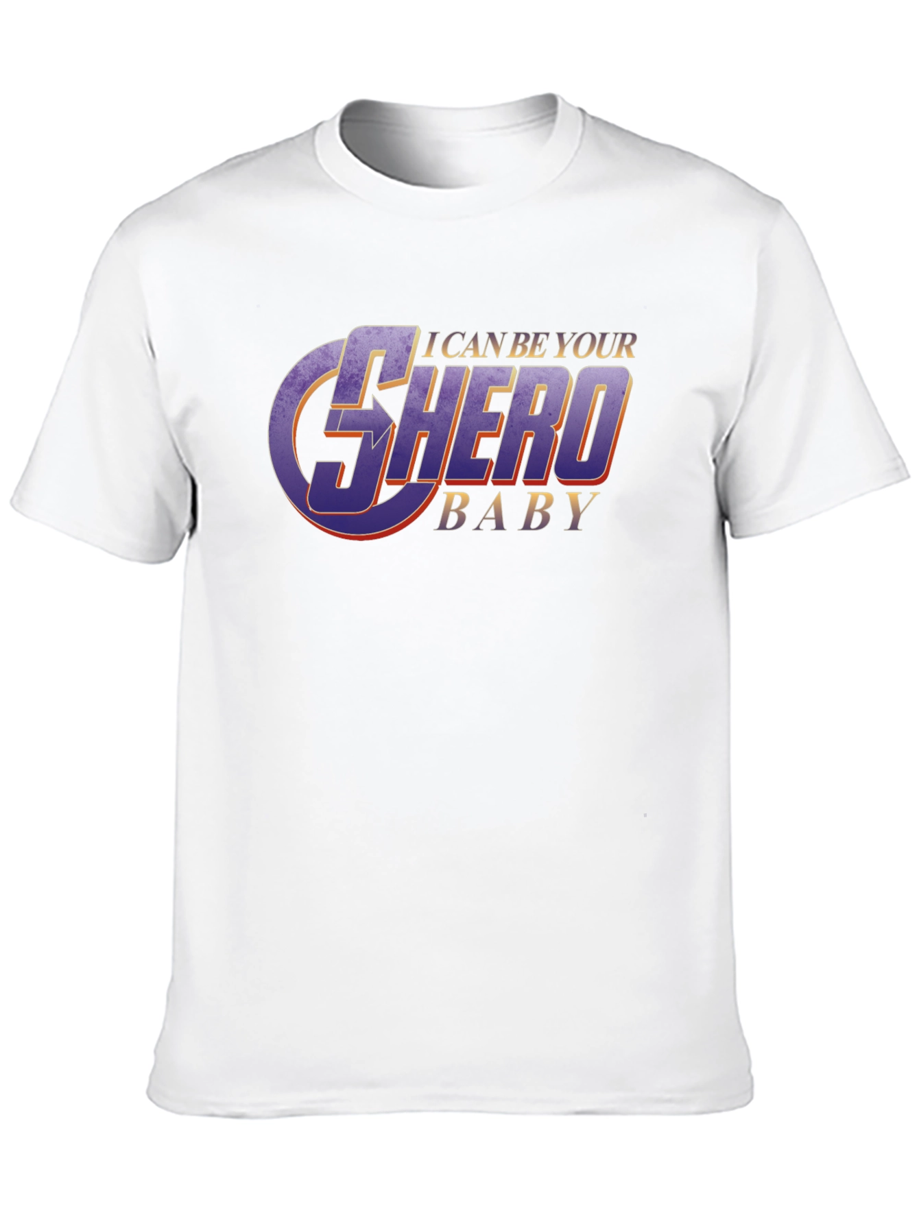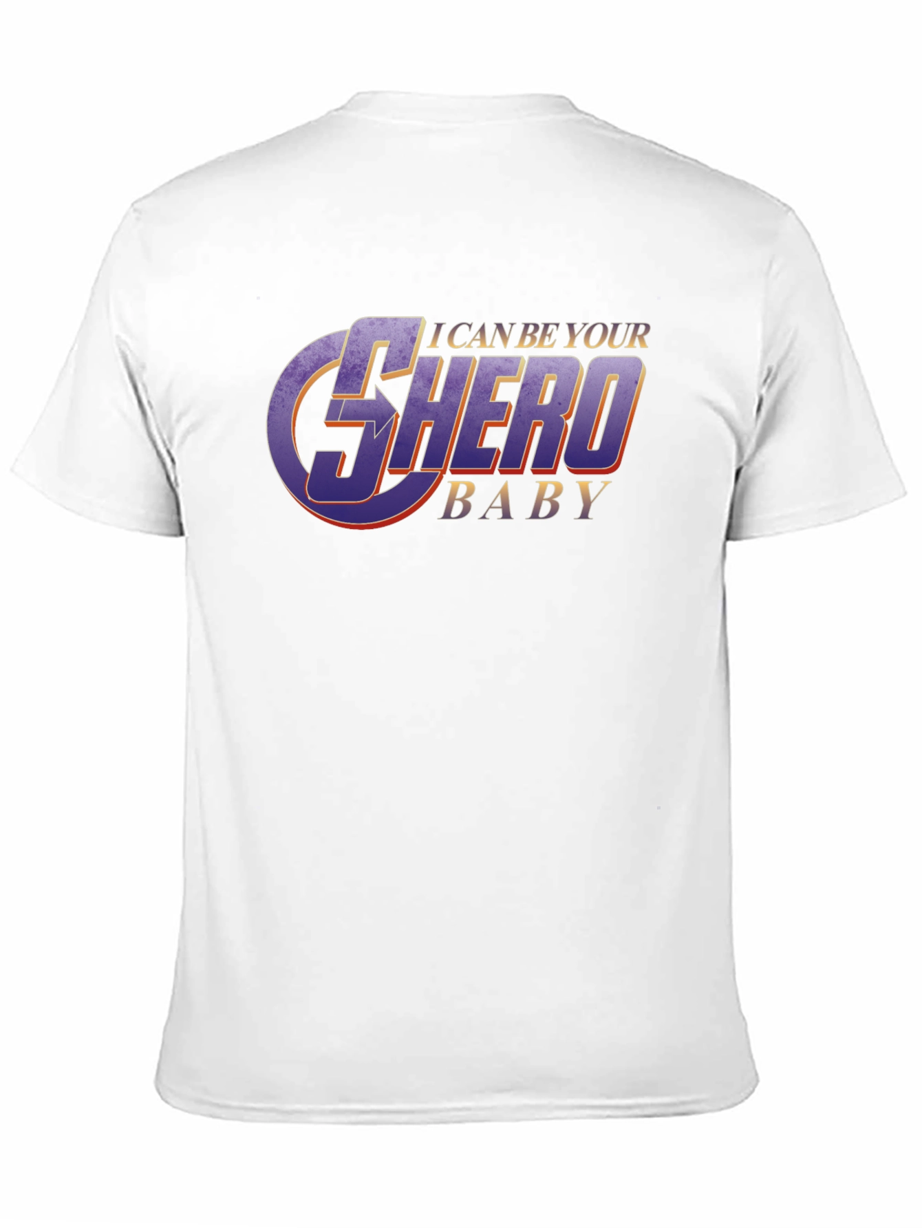 Show off your love for heroes with this stylish graphic t-shirt! The black tee features a creative design with the phrase 'I CAN BE YOUR SHERO BABY' in a superhero-themed font. Made from comfortable, breathable fabric, this shirt is perfect for casual wear, comic conventions, or everyday adventures. The eye-catching design is sure to turn heads and spark conversations. Ideal for fans of superheroes, empowerment, and unique fashion. Add this statement piece to your wardrobe and embrace your inner hero!