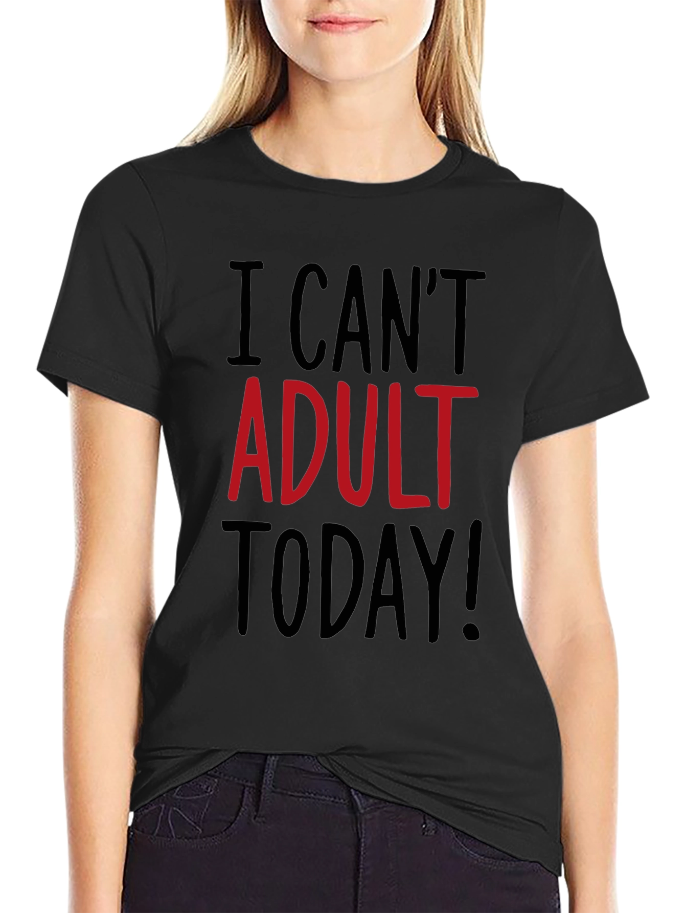Express your playful side with this "I Can't Adult Today" graphic t-shirt. Made from a comfortable-looking black fabric, this tee features bold lettering with the word "ADULT" highlighted in red, making a humorous statement. The shirt's design is casual and versatile, perfect for everyday wear. Pair it with jeans or shorts for a relaxed look. Whether you're lounging at home or hanging out with friends, this shirt is sure to bring a smile and spark conversation. It's a fun addition to any wardrobe, blending comfort with a touch of wit. Ideal for those days when you just want to take it easy!