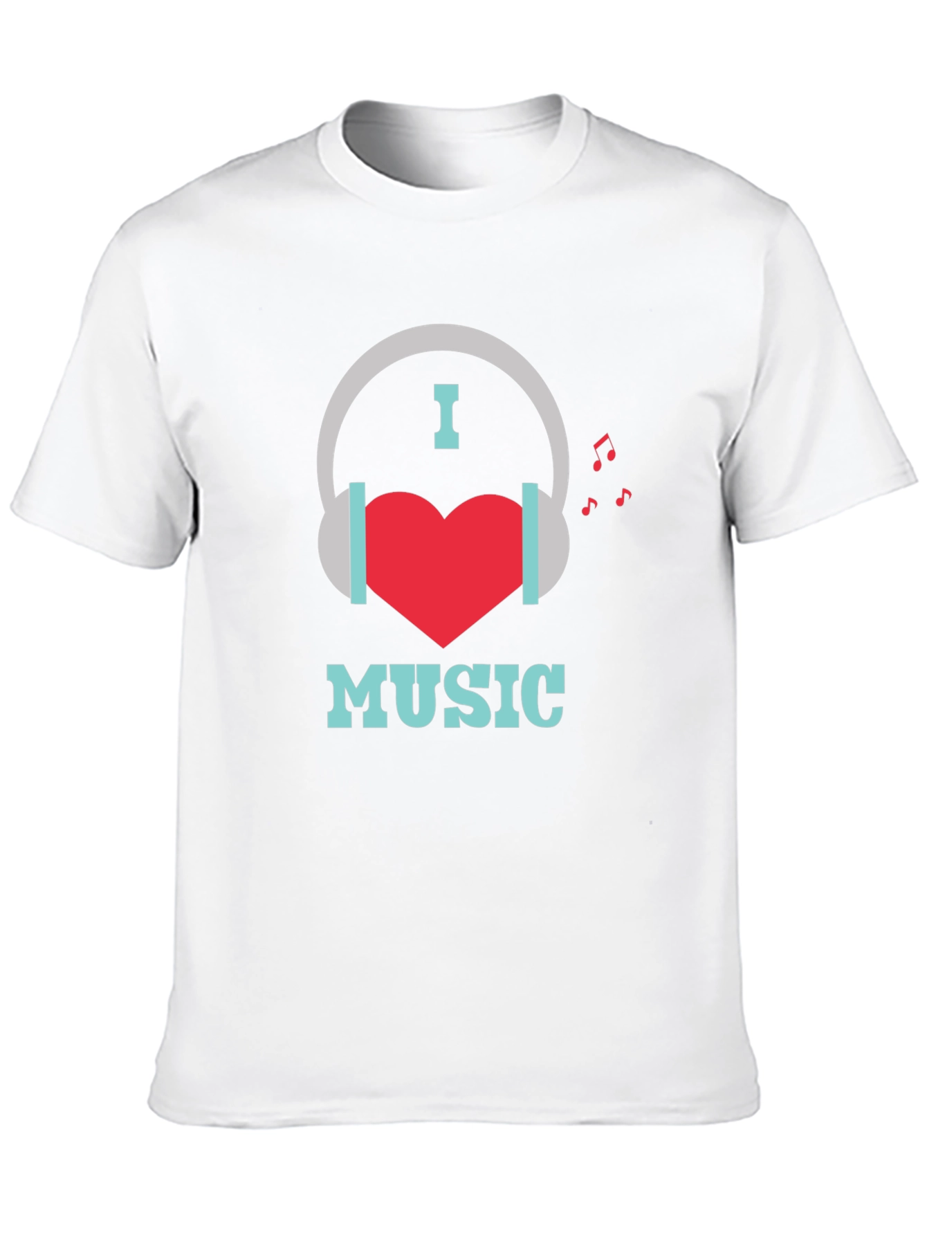 Show your love for music with this stylish black t-shirt. Featuring a vibrant "I Heart Music" graphic with headphones and musical notes, this shirt is perfect for music lovers. The design incorporates a bold red heart and cool blue lettering for a catchy contrast. Made from a comfortable, breathable fabric, this tee is ideal for everyday wear, concerts, or casual outings. Express your passion for music with this eye-catching and comfortable t-shirt. Grab yours today and let the world know you love music!
