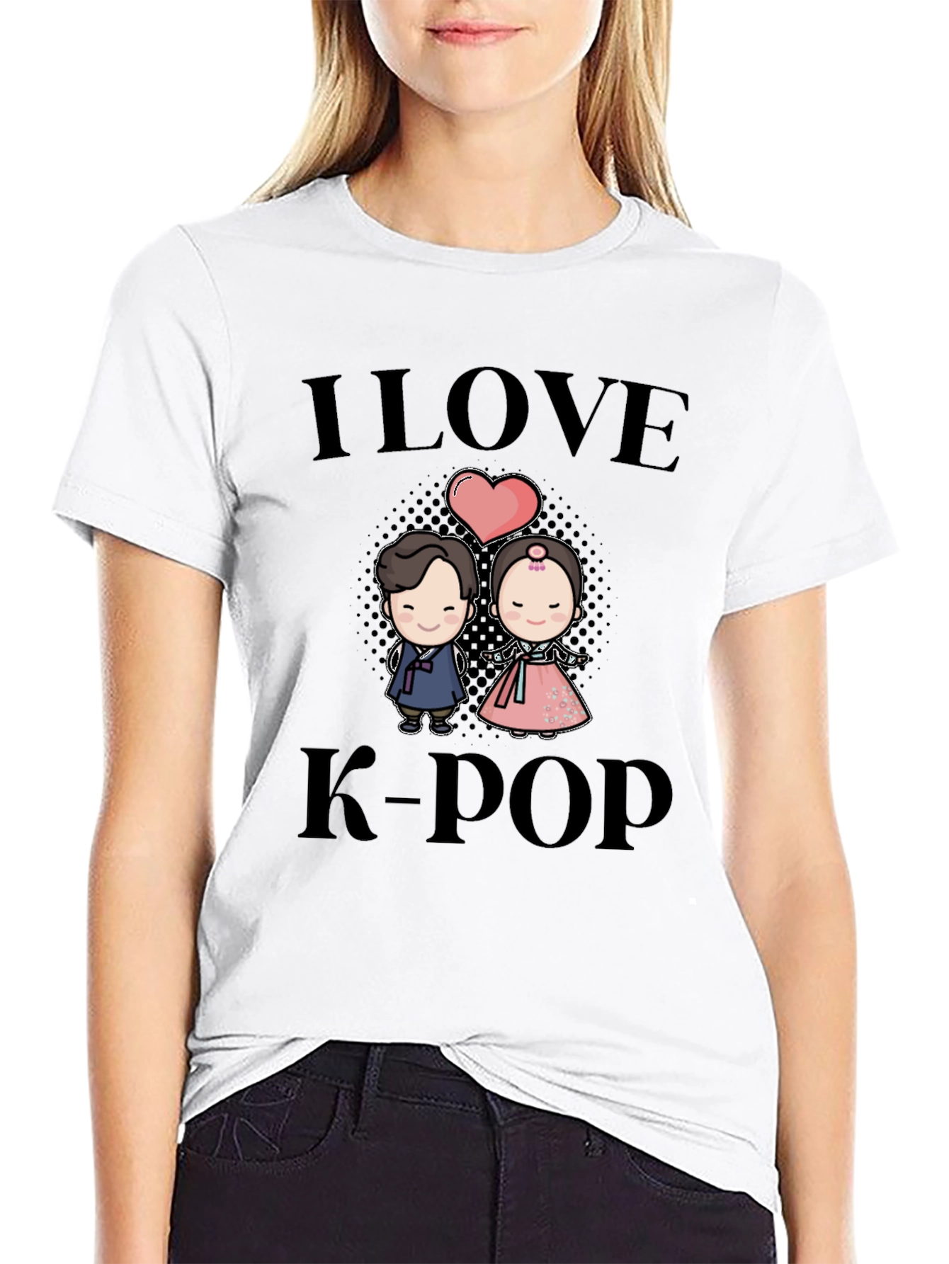 Show your love for K-Pop with this stylish black t-shirt. Featuring a charming cartoon graphic of two figures in traditional Korean clothing under a pink heart, this shirt is perfect for any K-Pop fan. The bold "I LOVE K-POP" text makes a statement, while the comfortable fabric ensures all-day wearability. Ideal for casual outings, concerts, or just lounging at home, this t-shirt is a fun and fashionable way to express your passion for Korean pop music. Get yours today and let the world know you're a true K-Pop enthusiast!