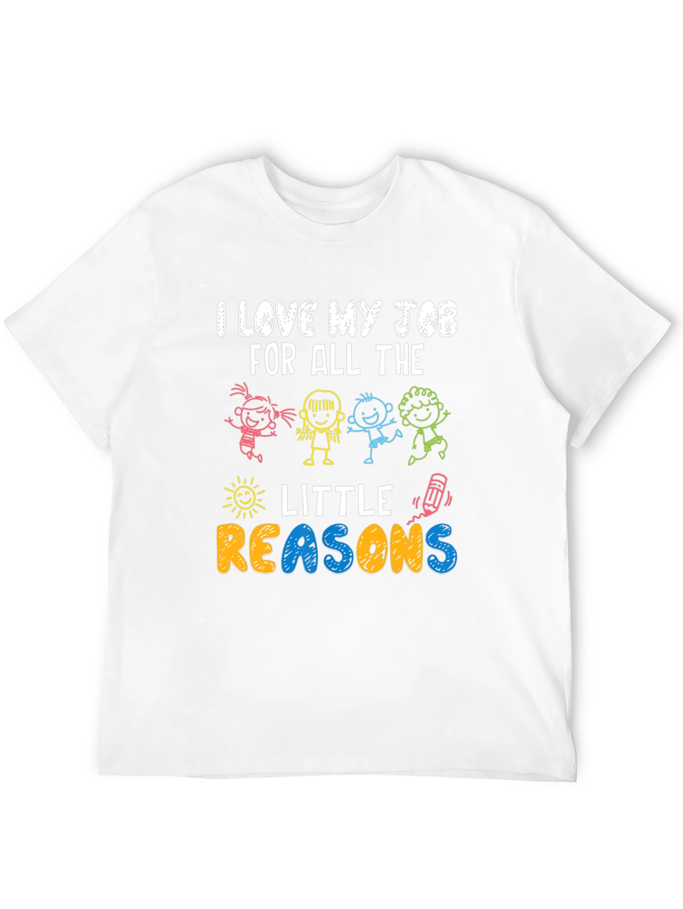 Show your love for teaching with this playful "I Love My Job For All The Little Reasons" t-shirt. The design features colorful cartoon children and a whimsical sun graphic, making it perfect for teachers who adore their students. Crafted from a comfortable black fabric, this tee is ideal for everyday wear in the classroom or casual outings. The eye-catching print adds a touch of fun to your wardrobe, while expressing your dedication to education. It's a great gift for teachers to celebrate their passion and commitment.