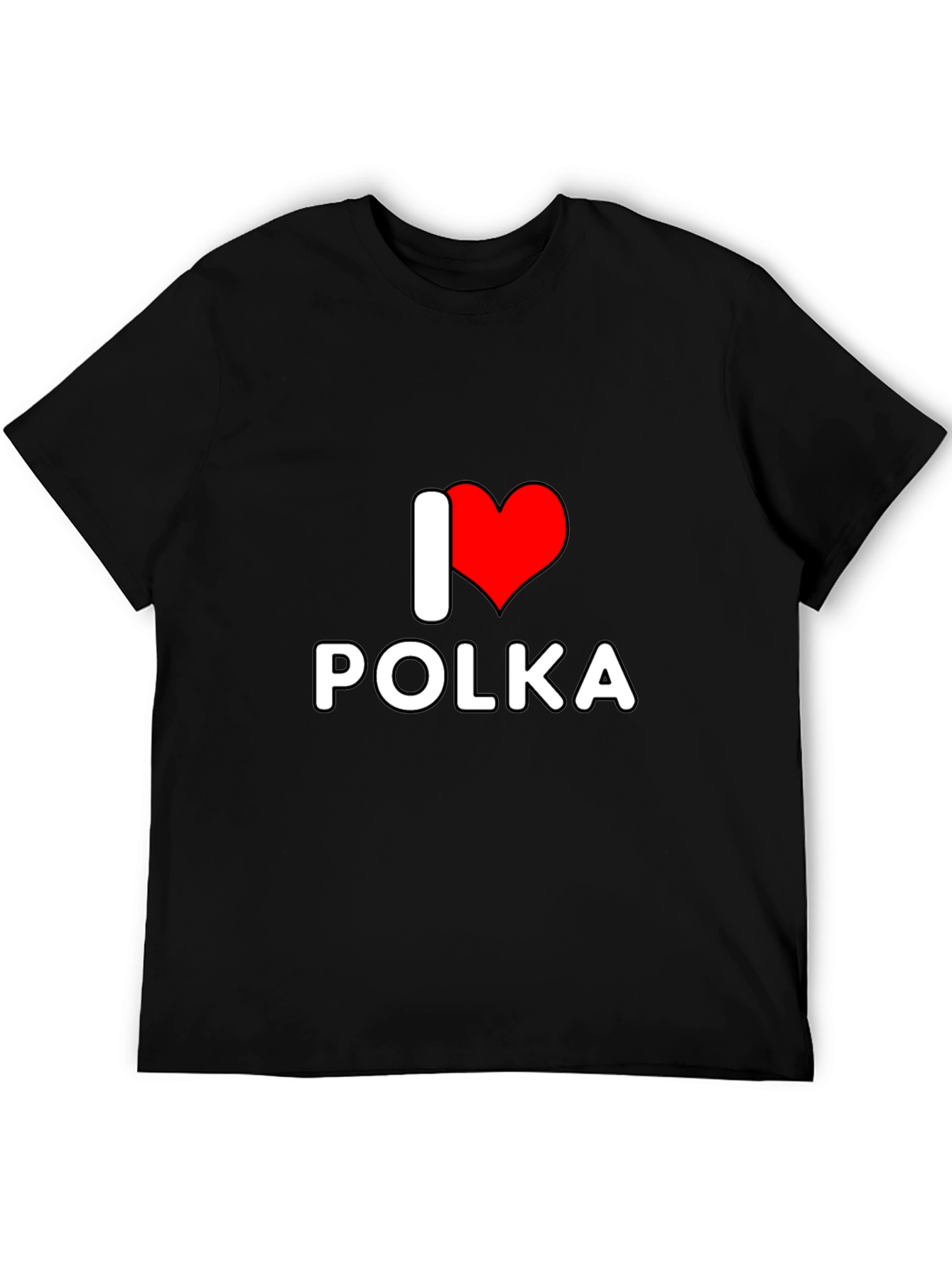Show your love for Polka music with this eye-catching black t-shirt. This comfortable tee features a bold "I ❤️ POLKA" design with a vibrant red heart. The design is printed in white, offering a stark contrast against the black shirt. Made from what appears to be a soft, breathable cotton blend, this shirt is perfect for casual wear, music events, or as a gift for the Polka enthusiast in your life. The classic fit and short sleeves make it a versatile addition to any wardrobe. Express your passion for music with this unique and stylish tee!