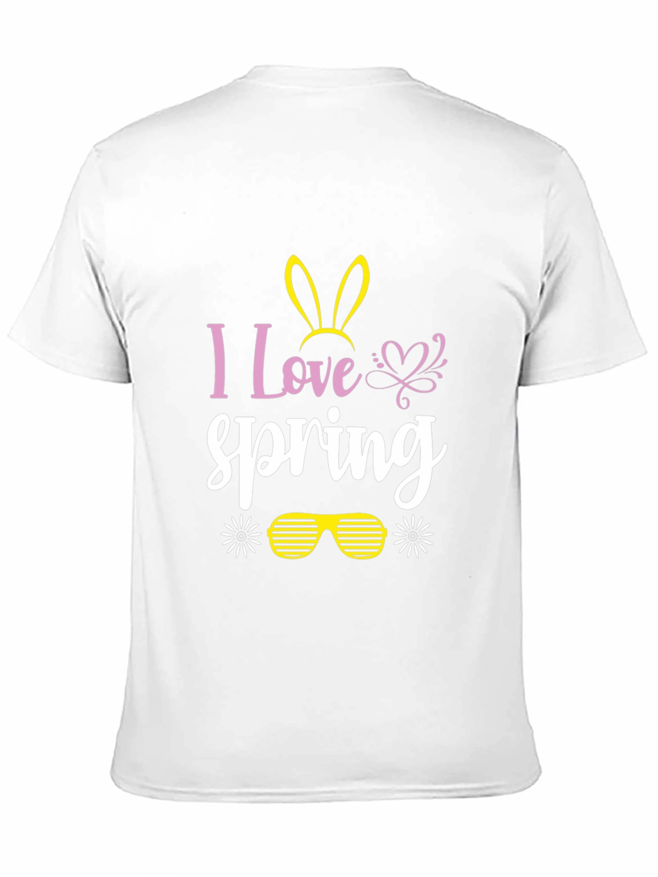 Celebrate the spring season in style with this unique "I Love Spring" t-shirt! The design features a playful combination of text, bunny ears, a heart, and sunglasses, all rendered in vibrant colors like pink and yellow. This eye-catching tee is perfect for Easter celebrations, spring outings, or simply showing your love for the season. Made from soft, breathable fabric, this shirt offers both comfort and style. It's a fun and festive addition to any wardrobe. Grab yours today and hop into spring!
