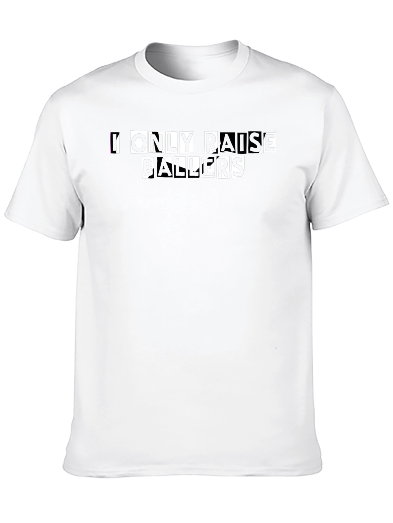 Show off your baller status with this stylish black graphic tee! The shirt features a bold, eye-catching "I ONLY RAISE BALLERS" design emblazoned across the chest. Made from comfortable fabric, this t-shirt is perfect for everyday wear, whether you're hitting the gym, hanging out with friends, or just relaxing at home. Its versatile design also makes it a great conversation starter. The classic black color ensures it pairs well with any bottoms, making it a must-have addition to your wardrobe. Elevate your casual style with this statement piece!