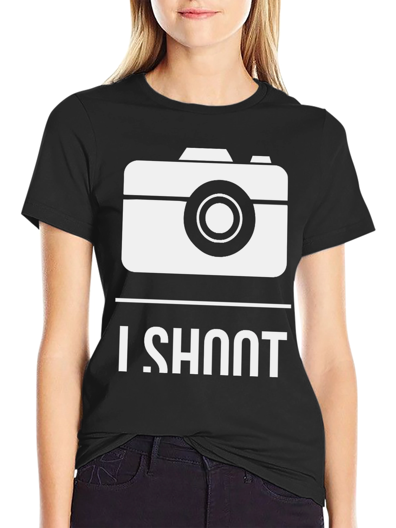 Capture attention with this stylish black t-shirt featuring a bold, minimalist white camera graphic and the witty phrase "I SHOOT". Crafted from comfortable material, this tee offers a relaxed fit and is perfect for photographers, hobbyists, or anyone with a love for visual storytelling. The eye-catching design makes it a great conversation starter, while the soft fabric ensures all-day comfort. Whether you're out on a photoshoot, attending a casual event, or simply expressing your passion, this unique t-shirt is a must-have addition to your wardrobe. Show off your love for photography in style!