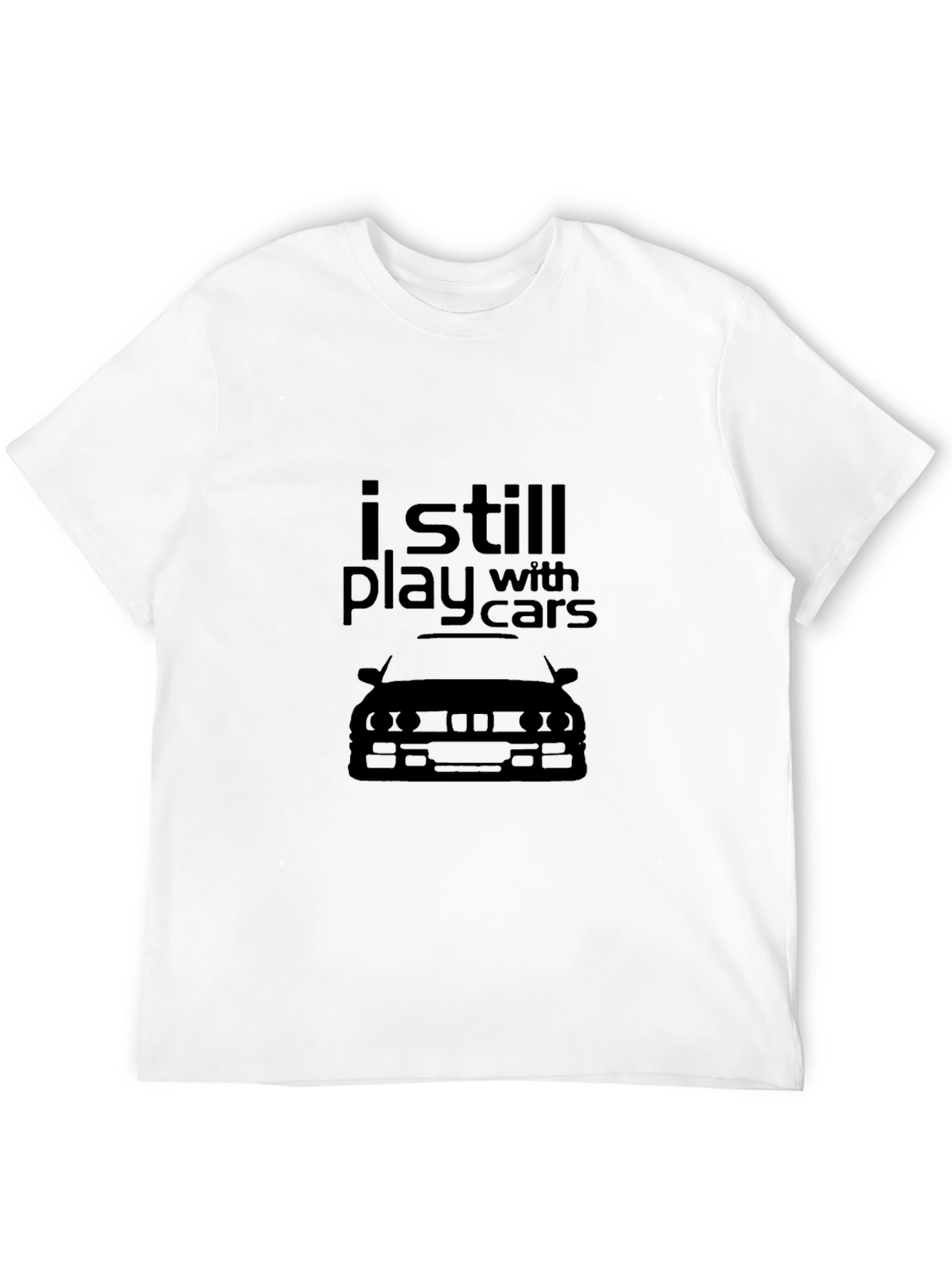 This classic black t-shirt features a playful design for car enthusiasts. The shirt displays the phrase "I still play with cars" in a stylish font, complemented by a silhouette of a car. Made from a comfortable-looking fabric, this tee is perfect for casual wear. Show off your love for automobiles with this unique and eye-catching design. Ideal for car meets, casual outings, or as a gift for the car lover in your life. Comfortable, durable, and stylish, this t-shirt is sure to become a favorite.