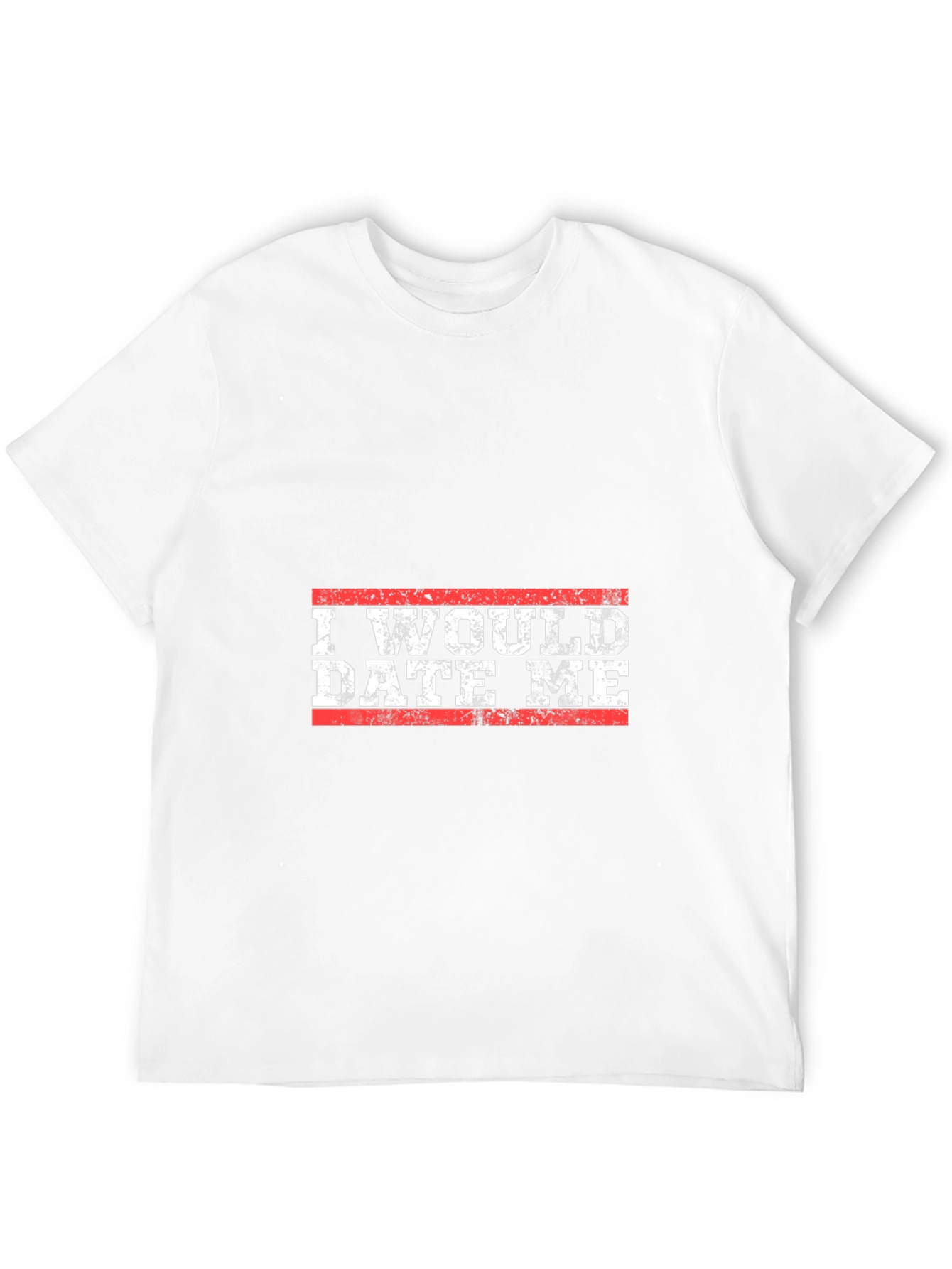 Show off your sense of humor with this eye-catching black graphic t-shirt. The bold "I Would Date Me" print, set between two red lines, is sure to get a laugh. This tee is made from a comfortable fabric blend, perfect for everyday wear. The classic fit looks great on all body types. Pair this tee with jeans or shorts for a casual, cool look. It's ideal for casual outings, parties, or just lounging around. This is a must-have addition to any wardrobe, perfect for those who love to make a statement.