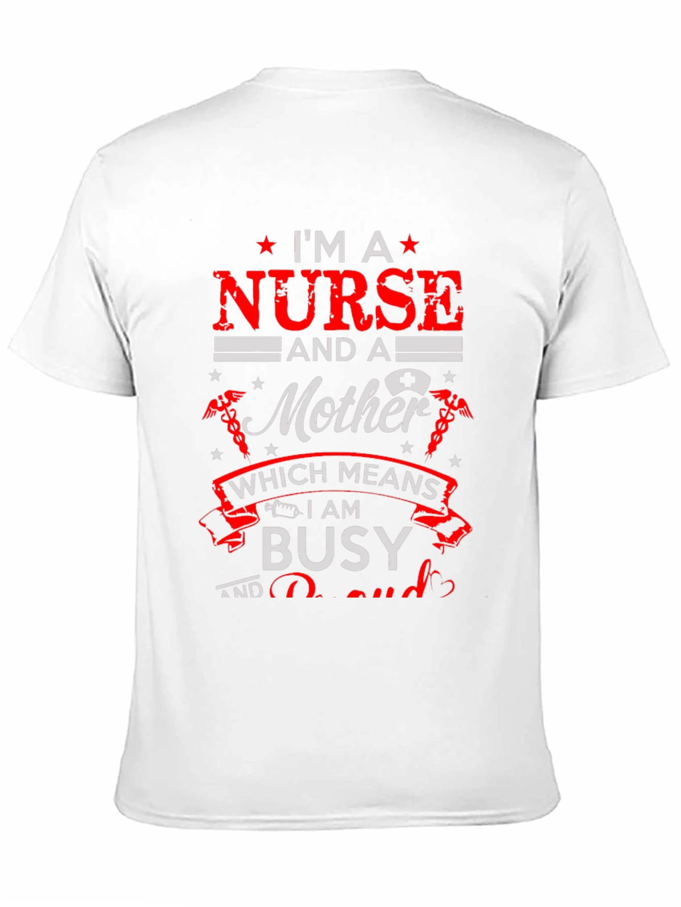 Show off your pride with this eye-catching graphic t-shirt. This shirt features bold, red text declaring "I'm A Nurse And A Mother", making it perfect for nurses who are also mothers. The design is complete with a nurse's cap and caduceus symbol, adding a professional touch. Made from comfortable, breathable material, this tee is ideal for casual wear, work, or special events. A great gift for the hard-working and proud nurse in your life. Machine washable for easy care. Get yours today and wear your heart on your sleeve!