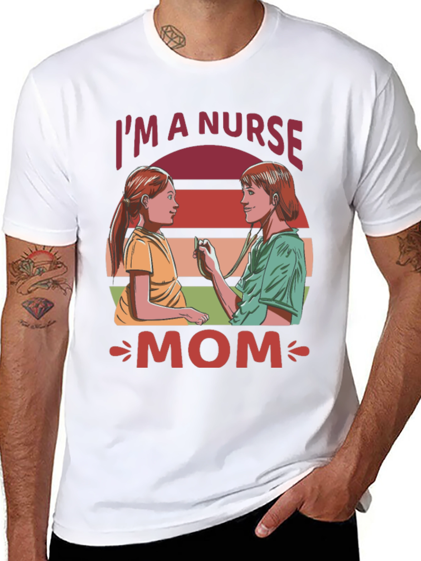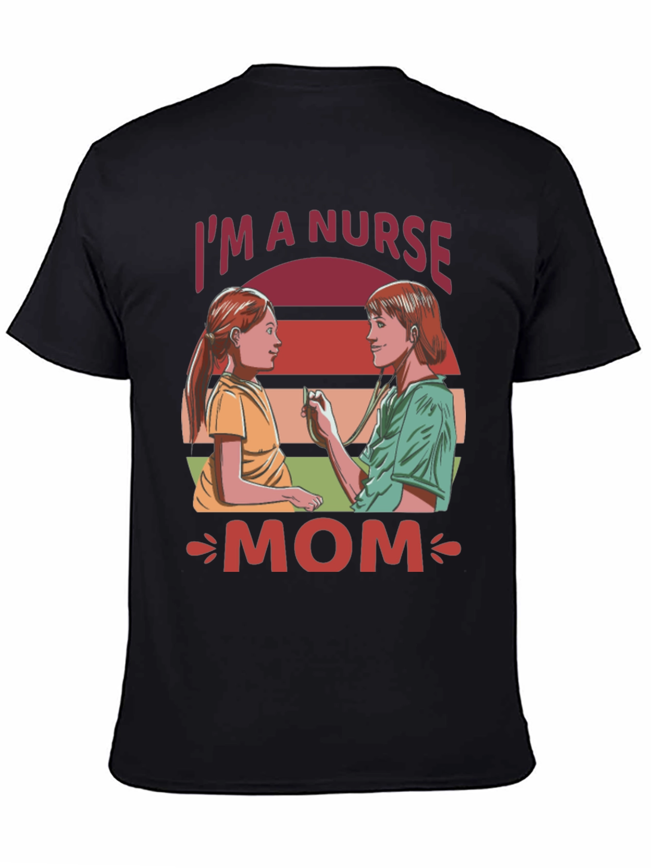 Show your love and appreciation for nurse moms with this unique graphic t-shirt. The shirt features a colorful retro-inspired design with the phrase "I'm A Nurse Mom". This tee is made from comfortable fabric, perfect for everyday wear. The design showcases a heartwarming image of a nurse caring for a child, making it a thoughtful gift for Mother's Day, birthdays, or any occasion to celebrate the special nurse in your life. This t-shirt is a great way to show pride in the nursing profession and the dedication of nurse mothers.
