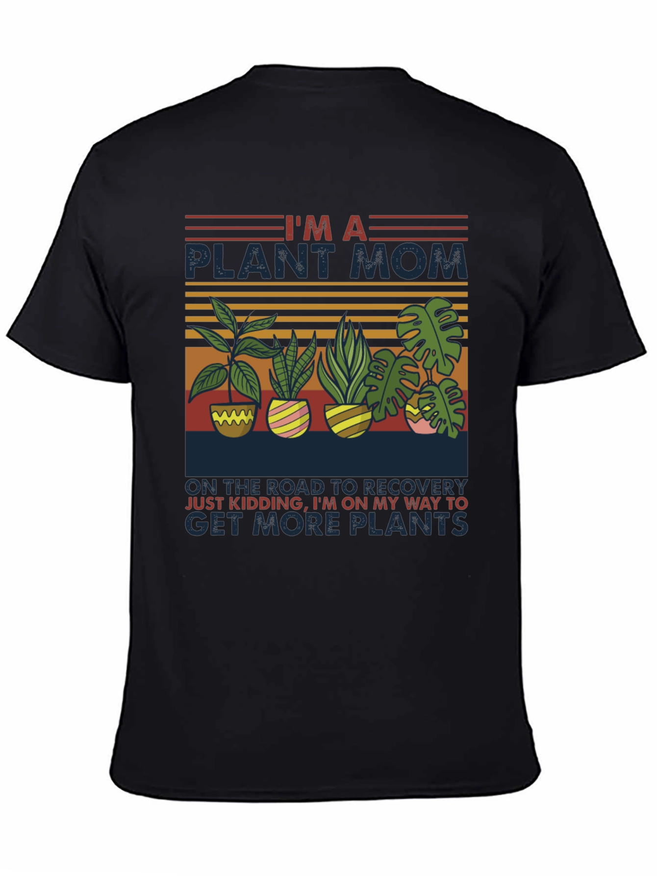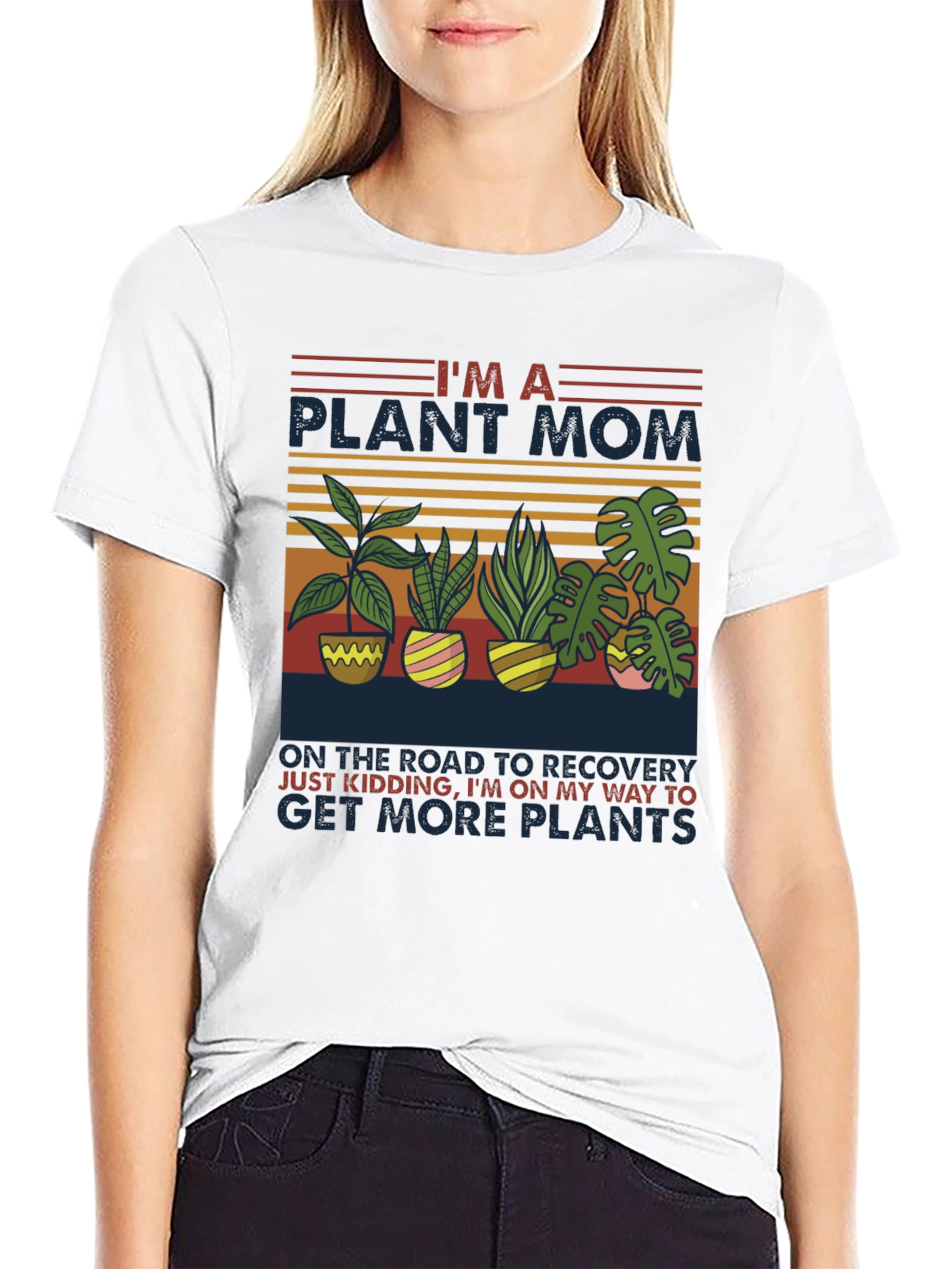 Show off your love for plants with this comfortable and stylish black t-shirt! Featuring a playful graphic design with potted plants and the phrase "I'M A PLANT MOM ON THE ROAD TO RECOVERY JUST KIDDING, I'M ON MY WAY TO GET MORE PLANTS". The shirt is made from soft, breathable fabric, making it perfect for everyday wear, whether you're tending to your indoor jungle or out on a plant-shopping adventure. This t-shirt is a must-have for any proud plant parent!