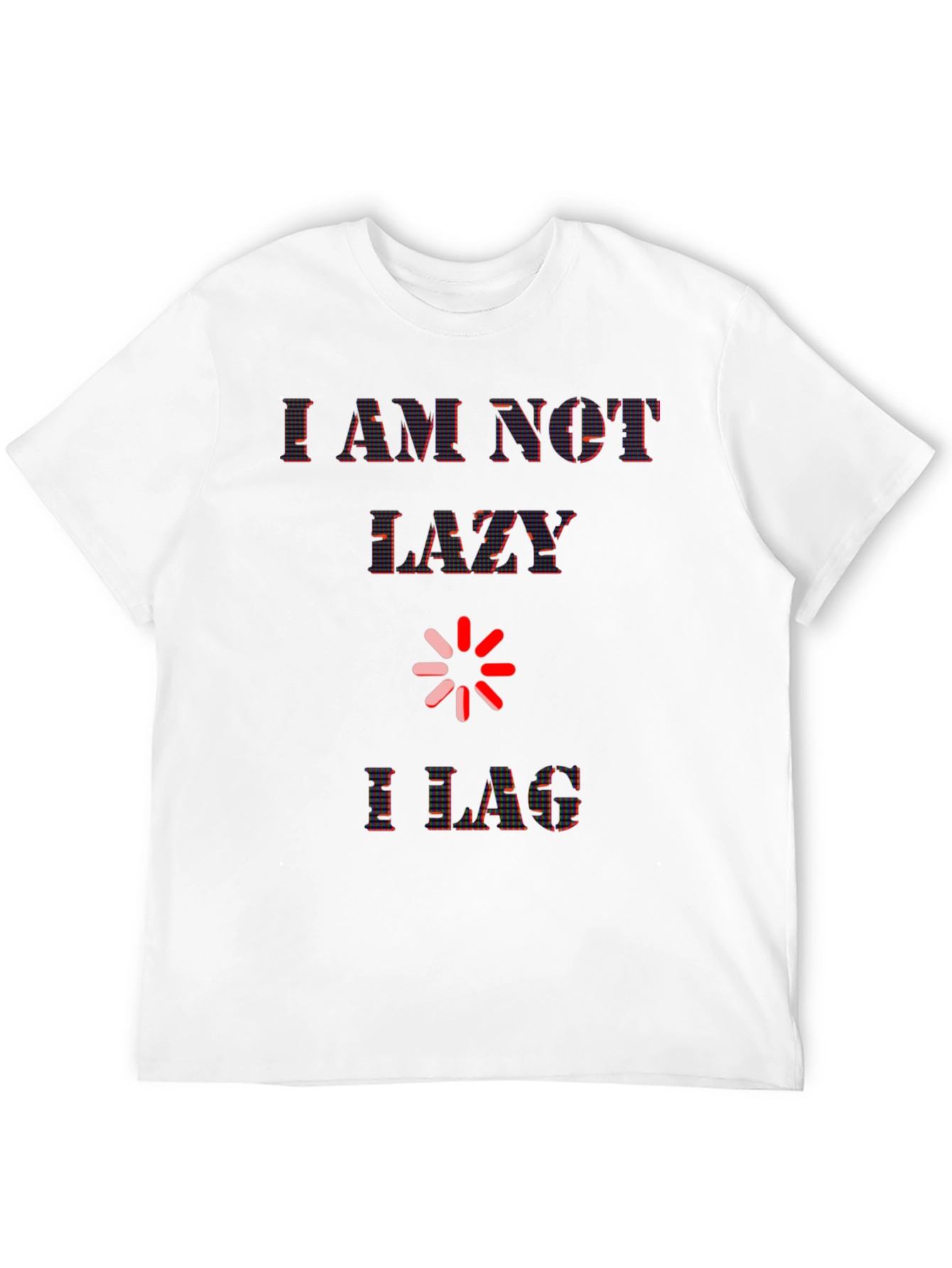Show off your gamer pride with this unique 'I'm Not Lazy I Lag' t-shirt. Crafted from a comfortable, breathable black fabric, this tee features a witty phrase in a pixelated, tech-inspired font that any gamer will appreciate. The central graphic is an eye-catching stylized loading icon in red and white. Ideal for casual wear, gaming sessions, or as a gift for the gamer in your life, this t-shirt combines comfort with a touch of humor.