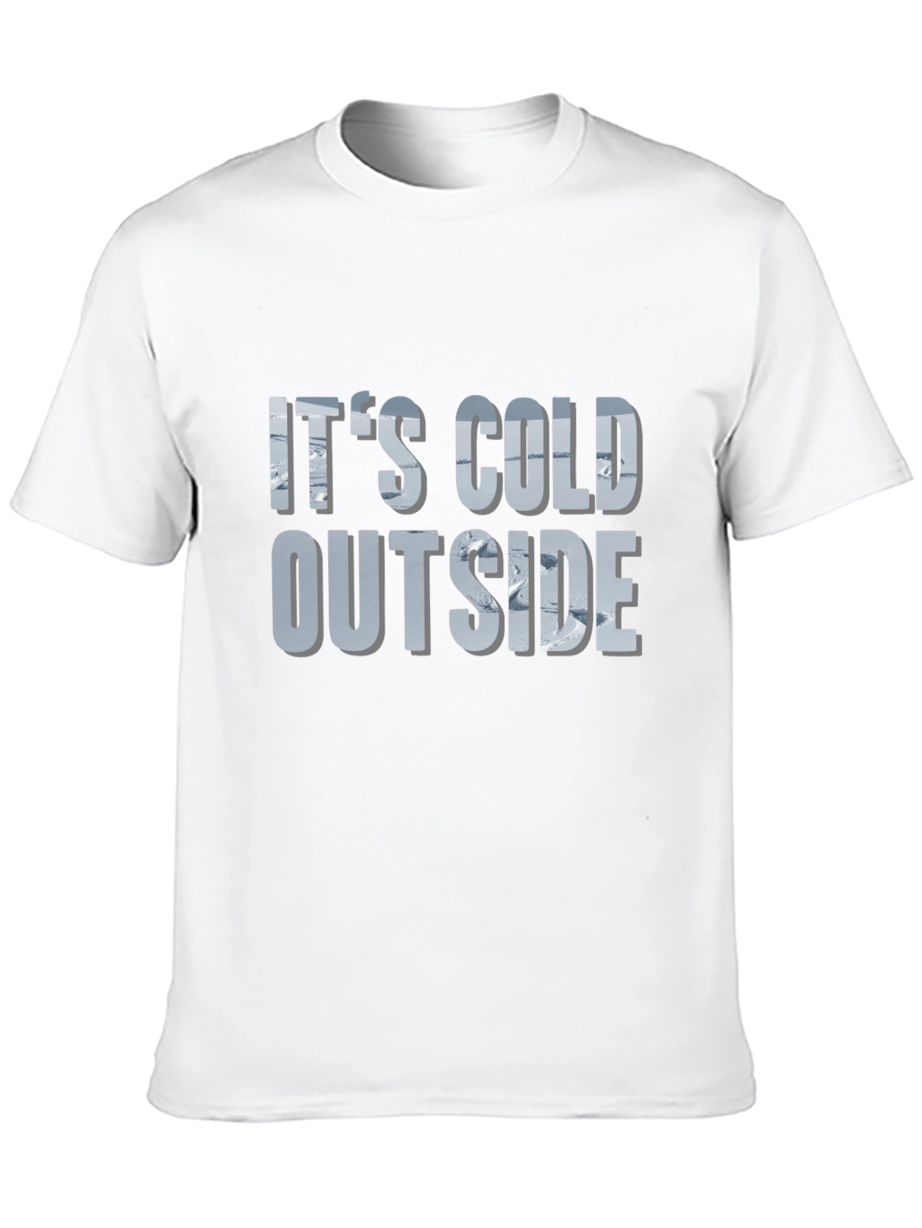 Stay cozy and stylish with this black graphic t-shirt. Featuring the phrase 'It's Cold Outside' in a bold, textured font, this tee makes a statement. The design is eye-catching, making it perfect for casual wear or layering under a jacket. The shirt appears to be made of a soft, breathable fabric, ensuring all-day comfort. Ideal for cold weather or adding a touch of winter charm to any outfit, this graphic tee is a versatile addition to your wardrobe. Show off your seasonal spirit with this trendy and comfortable top!