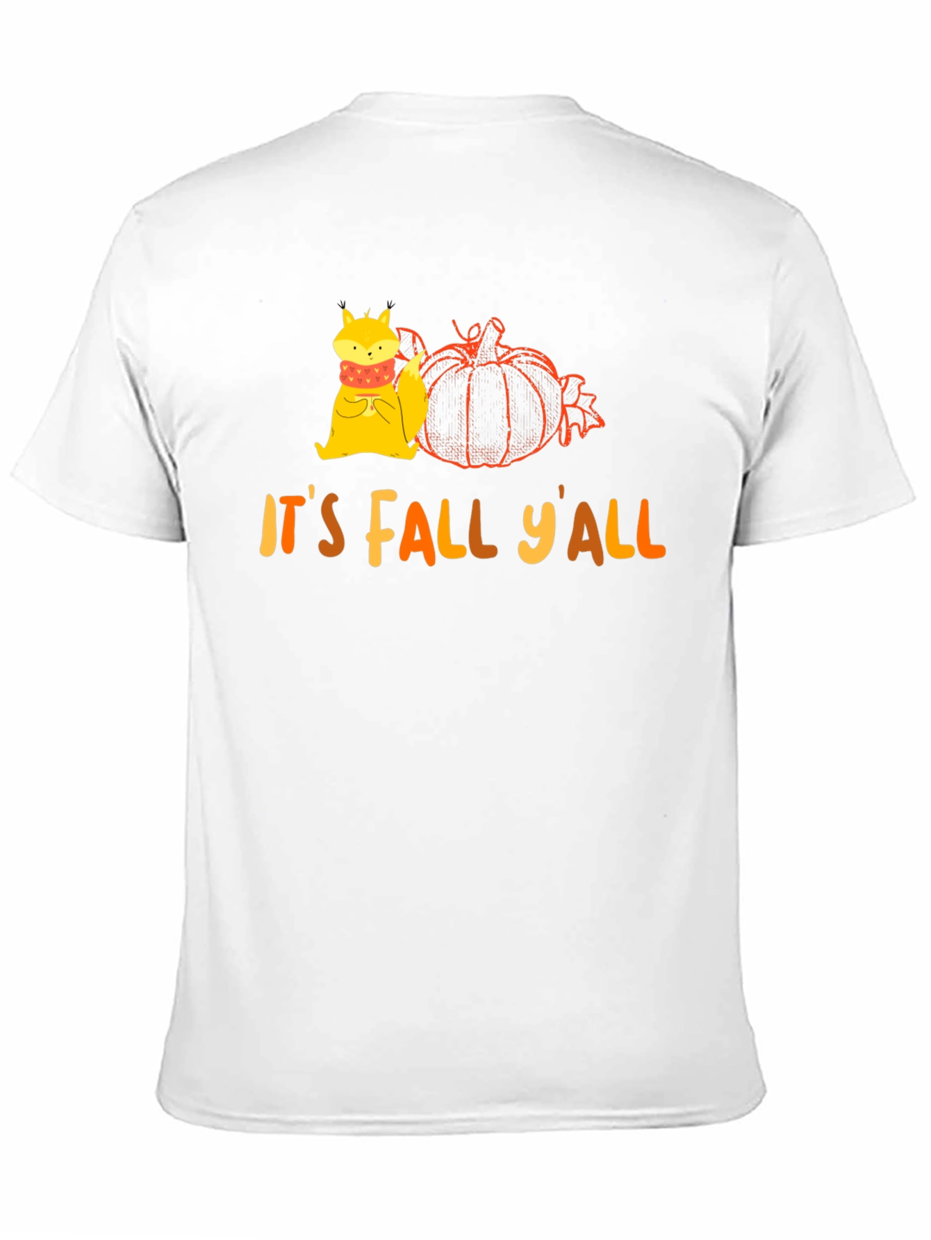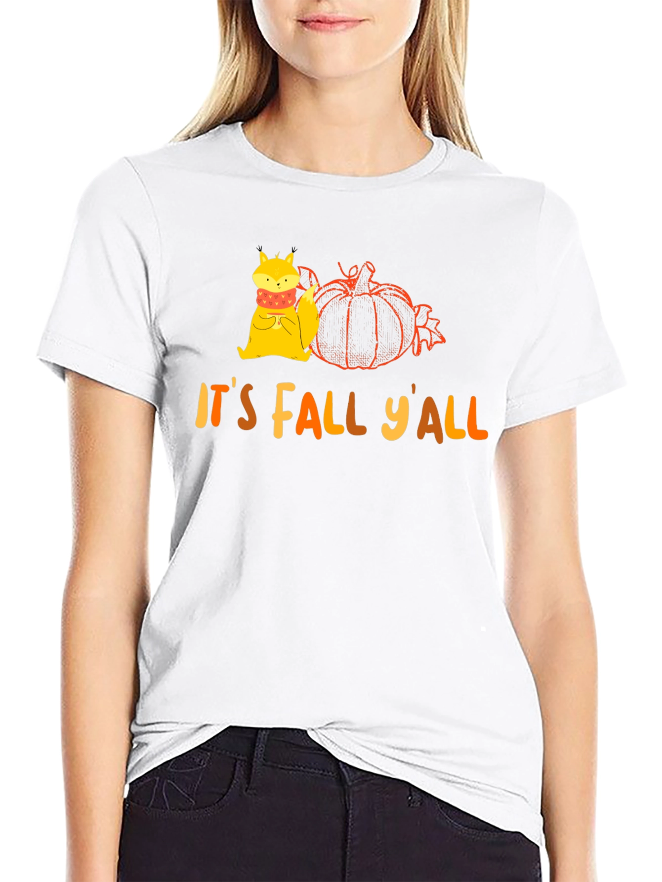 Get ready for autumn with this charming black t-shirt. The design features a cute yellow fox wearing a red scarf next to an orange pumpkin, accompanied by the playful phrase "It's Fall Y'All" in festive autumn colors. This shirt is made from soft and breathable fabric for comfortable wear all day long. Perfect for casual outings, fall festivals, or simply showing off your love for the season, this t-shirt is a must-have addition to your wardrobe. It's a great way to celebrate autumn in style and comfort. Grab yours and get ready to enjoy everything that fall has to offer!