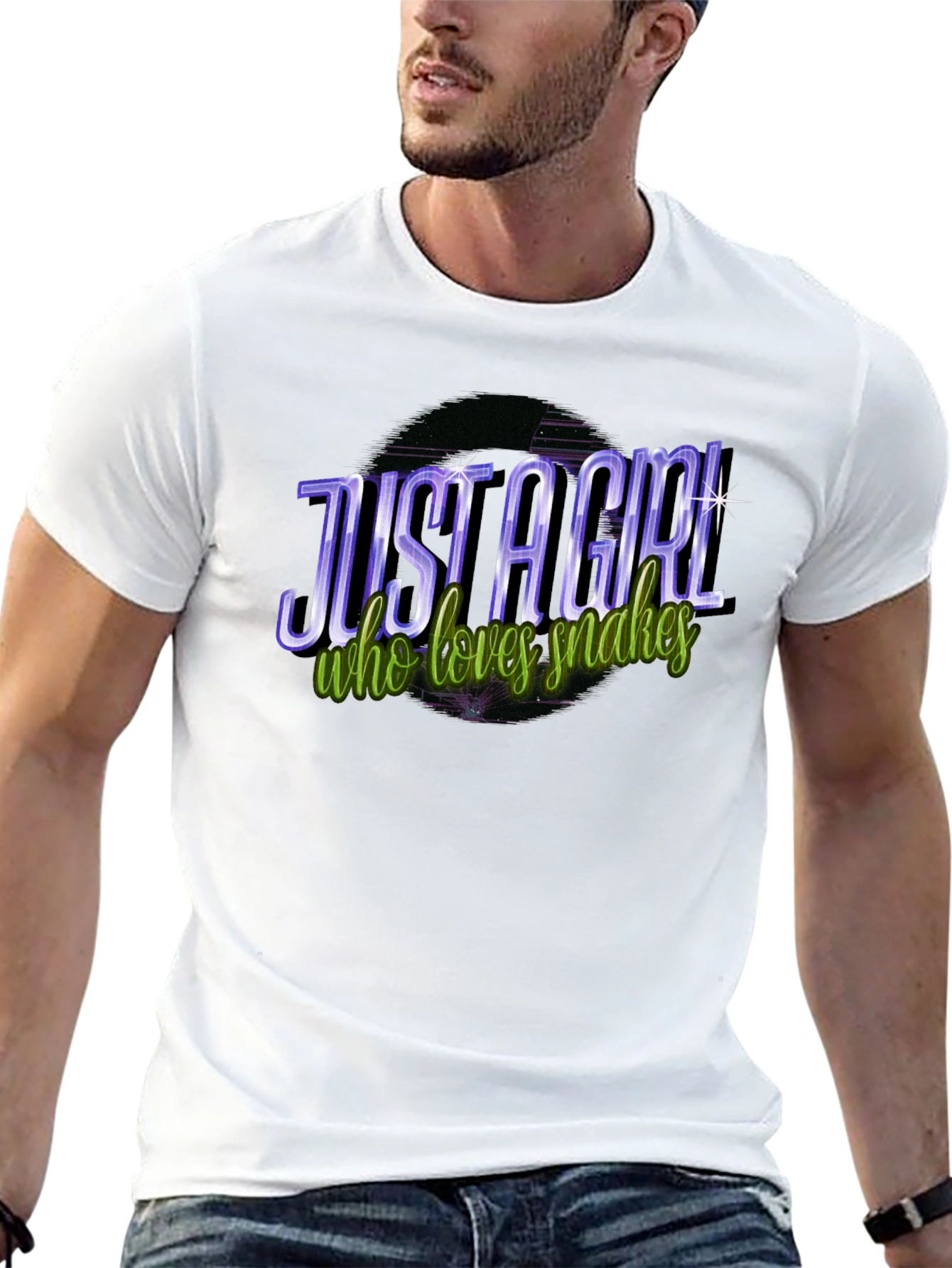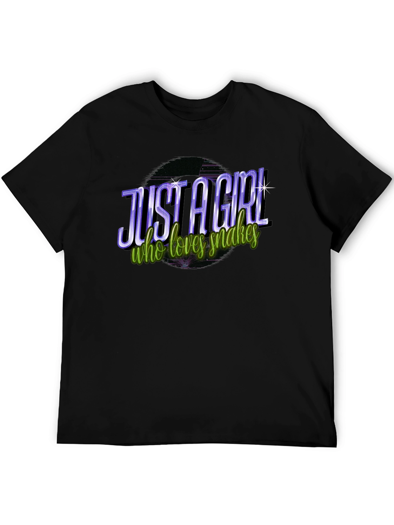 Show off your love for snakes with this cool, black t-shirt! Featuring a neon-style graphic that reads, "Just A Girl who loves snakes," this tee is sure to turn heads. The retro-inspired design adds a touch of vintage flair. Made from a comfortable fabric, this shirt is perfect for everyday wear. Whether you're lounging at home, hanging out with friends, or attending a reptile expo, this t-shirt lets you express your passion in style. Great gift for snake lovers. Get yours today and let the world know you're proud to be a snake enthusiast!