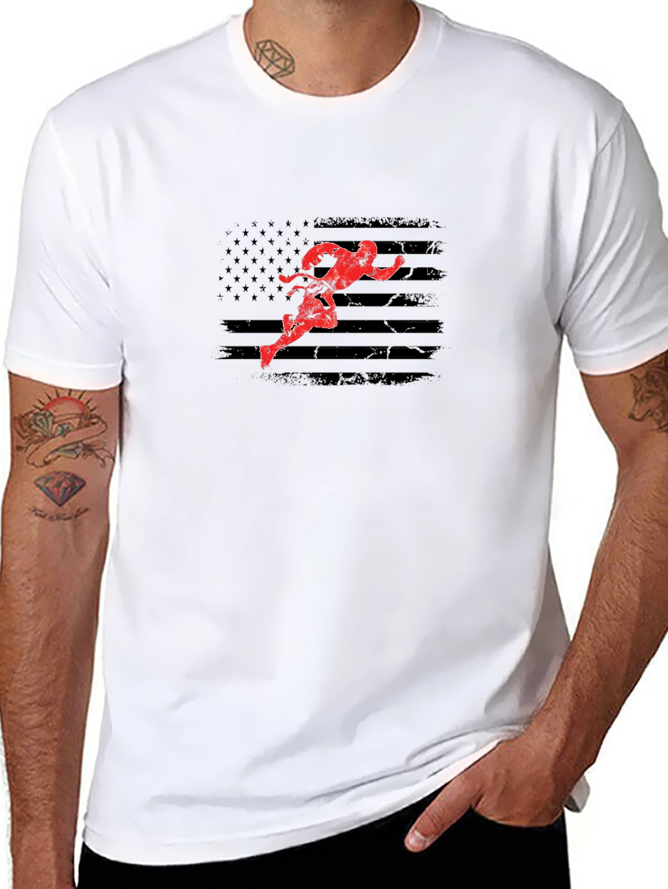 Show your love for karate with this unique black t-shirt. The design features a striking red karate silhouette overlayed on a distressed American flag. Perfect for martial arts enthusiasts and patriotic individuals alike. Made from a soft, comfortable fabric, this tee is ideal for casual wear, training sessions, or showing off your passion at events. The bold graphic ensures you'll stand out in style. Get yours today and make a statement!