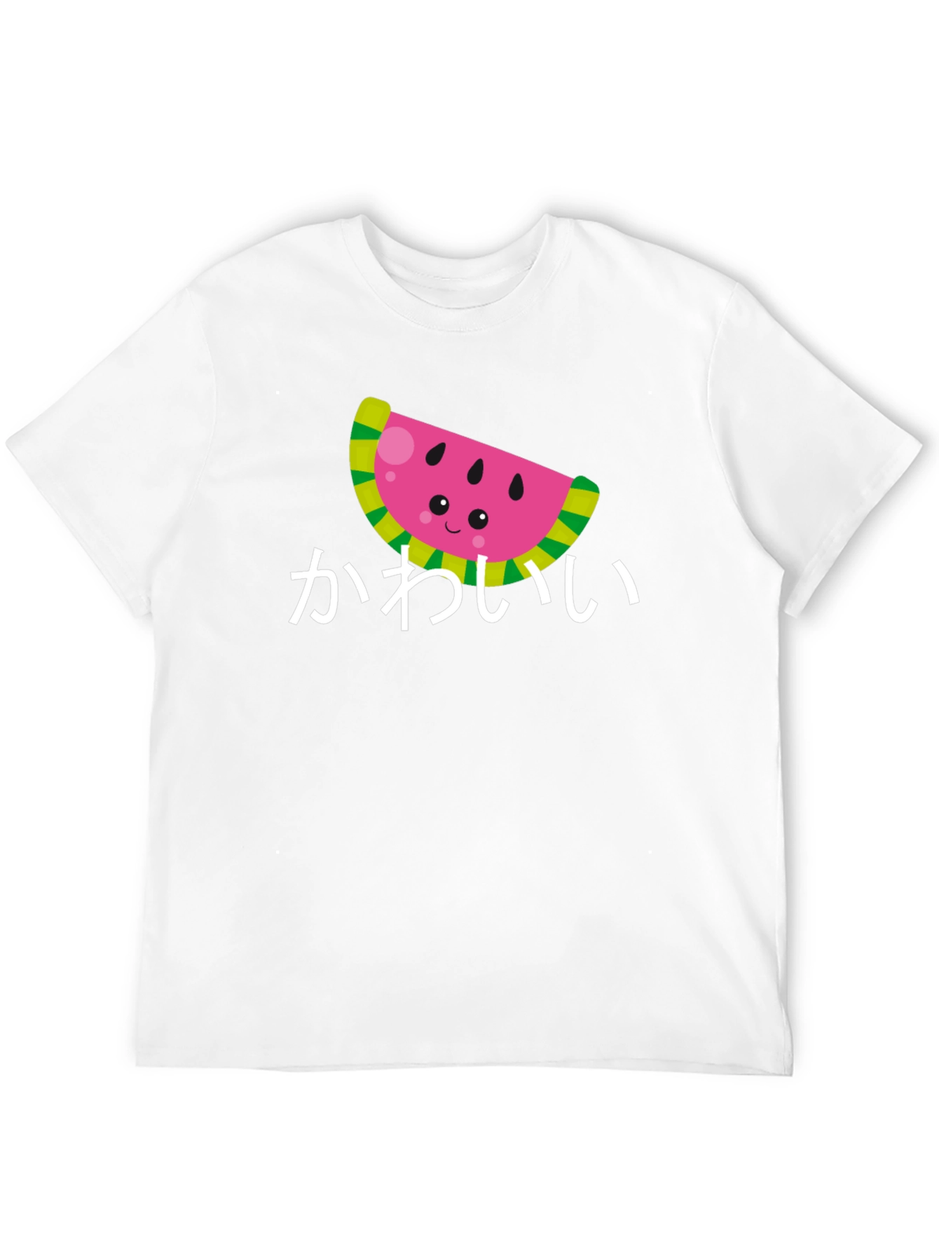 Show off your love for all things cute with this Kawaii Watermelon Graphic T-Shirt. Made of soft and comfortable material, this black tee features an adorable cartoon watermelon slice with a smiling face, along with Japanese text (kawaii), adding a touch of whimsical charm. The vibrant pink and green colors of the watermelon stand out beautifully against the dark background, making it a fun and eye-catching piece. Perfect for casual wear, this t-shirt is sure to bring a smile to your face and those around you. Ideal for expressing your playful personality or as a unique gift for a friend who loves kawaii culture.