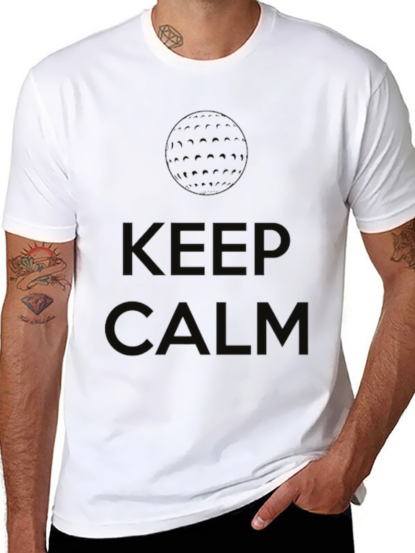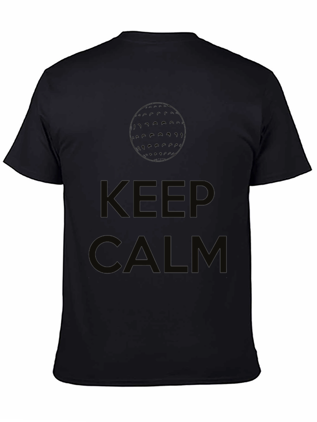 Stay cool on the course with this stylish black t-shirt! Featuring a subtle golf ball graphic and the classic "Keep Calm" slogan, this tee blends a sporty look with a relaxed vibe. The dark color hides any blemishes, and the simple design is perfect for casual wear or a round of golf. Comfortable and eye-catching, it's a great addition to any golfer's wardrobe. Wear it on the green or as a statement of your chill attitude wherever you go!