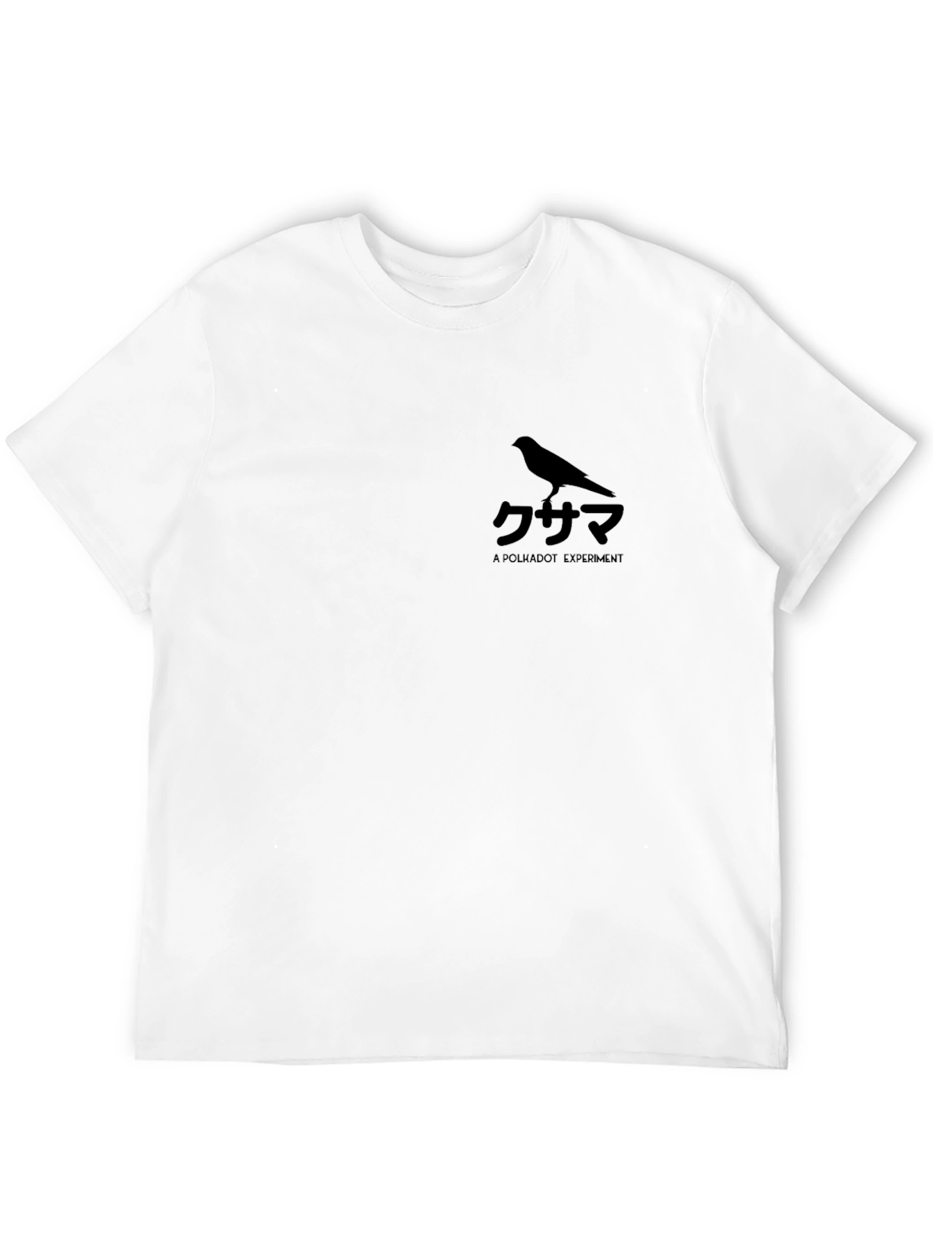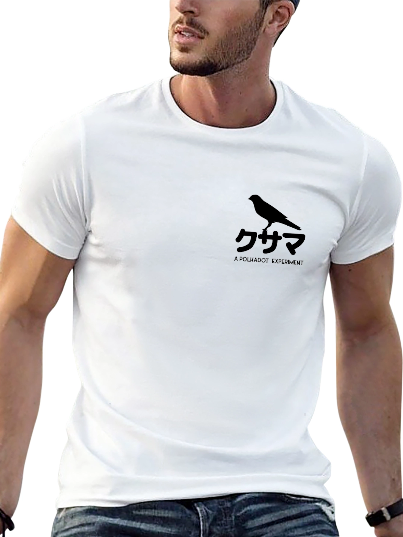 Show your love for Kusama with this stylish black t-shirt! Featuring a sleek silhouette of a crow, the Kusama kanji, and the words 'A Polkadot Experiment', this tee is perfect for cryptocurrency enthusiasts and blockchain aficionados. Made from a comfortable, dark fabric, this shirt is ideal for casual wear or making a statement at your next crypto meetup. The design is printed subtly on the upper chest, offering a stylish and understated look.