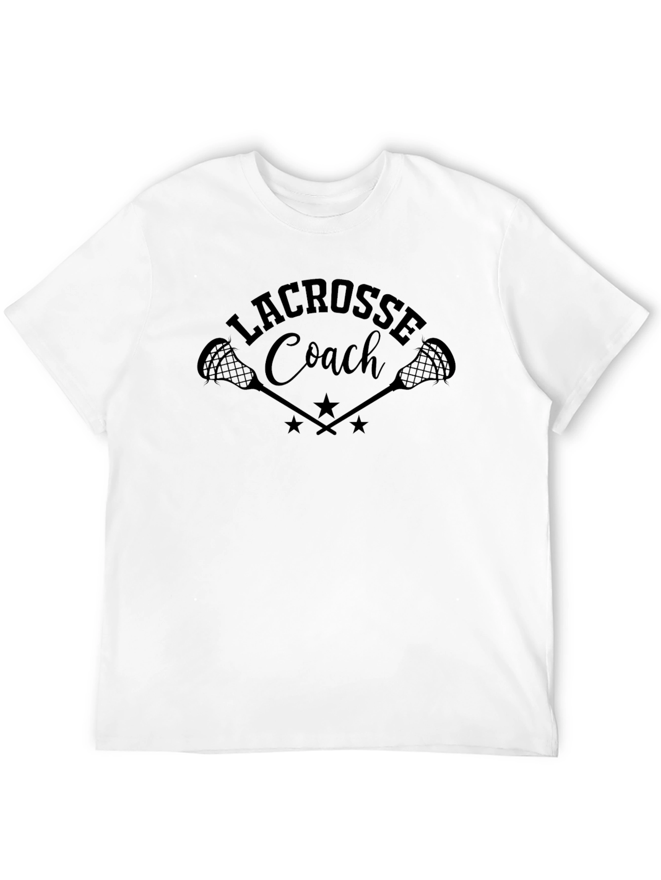 Show your passion for the game with this Lacrosse Coach T-Shirt. This black tee features a bold graphic design with 'Lacrosse Coach' arched above two crossed lacrosse sticks and three stars. The design is ideal for coaches to wear during games, practices, or casually to represent their sport. Comfortable and stylish, it makes a great gift for any lacrosse enthusiast.