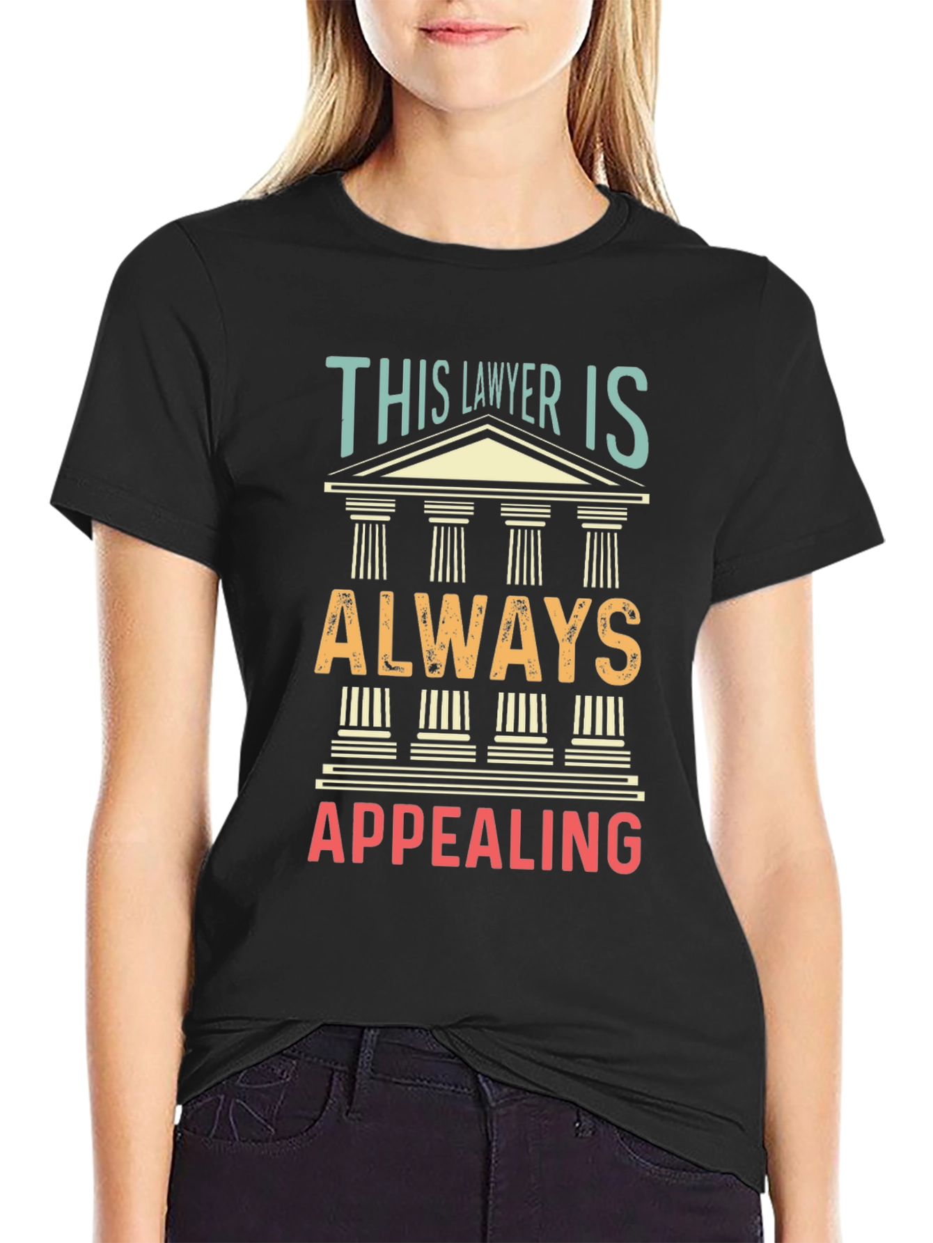Show off your legal wit with this unique t-shirt! The design features an eye-catching graphic of a courthouse facade accompanied by the phrase 'This Lawyer is Always Appealing.' Perfect for lawyers, law students, or anyone with a passion for justice and humor. Made from a soft, comfortable fabric, this tee is great for casual wear, law school events, or as a gift for your favorite legal eagle. Get ready to turn heads and spark conversations with this clever and stylish shirt. A perfect way to show off your professional pride with a lighthearted twist.