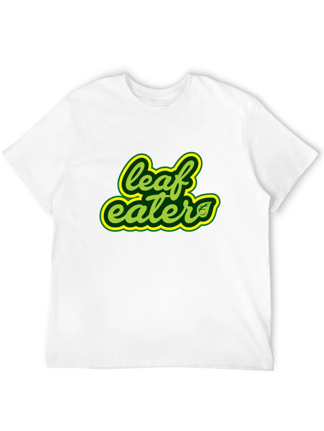 Show your love for nature with this stylish black graphic tee! Made from soft and breathable cotton, this t-shirt features a bold "Leaf Eater" design in vibrant green and yellow. The eye-catching design is sure to turn heads and spark conversations. Perfect for casual wear, outdoor adventures, or a relaxed day at home. Comfortable and durable, this shirt is a great addition to any wardrobe. Machine washable for easy care. Get yours today and express your unique style!