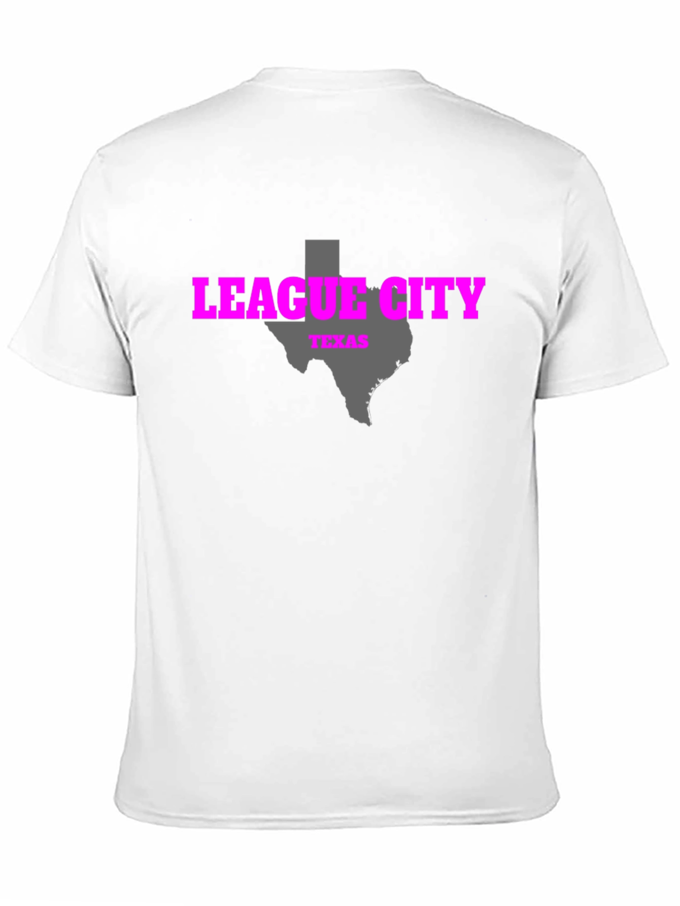 Show your love for League City, Texas with this stylish black t-shirt. The shirt features a bold "LEAGUE CITY" graphic in a vibrant pink, along with the state of Texas in gray. Made from a comfortable, breathable fabric, this tee is perfect for everyday wear. Whether you're a resident, a visitor, or just have a special place in your heart for this Texan town, this shirt lets you wear your pride with style. Great for casual outings, sporting events, or just relaxing at home. A perfect gift for friends and family who adore League City!