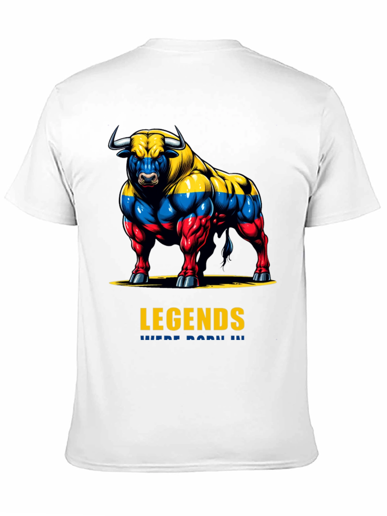 Show your strength with this bold black t-shirt featuring a powerful bull graphic. The bull is vividly designed with colors that pop, lending a unique and striking look. Made from a soft, breathable cotton fabric, this tee offers all-day comfort. Its classic fit is perfect for casual wear, workouts, or making a statement. Whether you're hitting the gym or hanging out with friends, this t-shirt will have you turning heads. Upgrade your wardrobe with this must-have piece and unleash your inner legend! Get yours today!