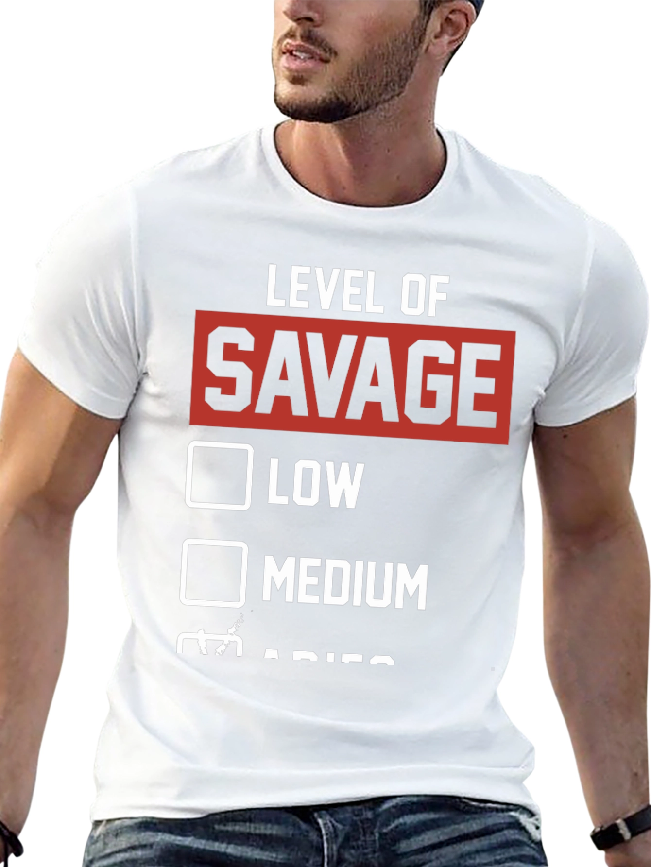 Express your bold personality with this Level of Savage graphic tee. This stylish black t-shirt features a unique design, with the phrase "Level of Savage" displayed prominently, with 'low' 'medium' and 'ladies' options underneath boxes. The red accent over the word "Savage" adds a touch of edginess to the design. Made from a comfortable fabric blend, this tee is perfect for casual wear or making a statement. Show off your confidence and humor with this eye-catching graphic tee. Ideal for everyday wear, parties, or as a fun gift. Grab yours and let the world know your level!