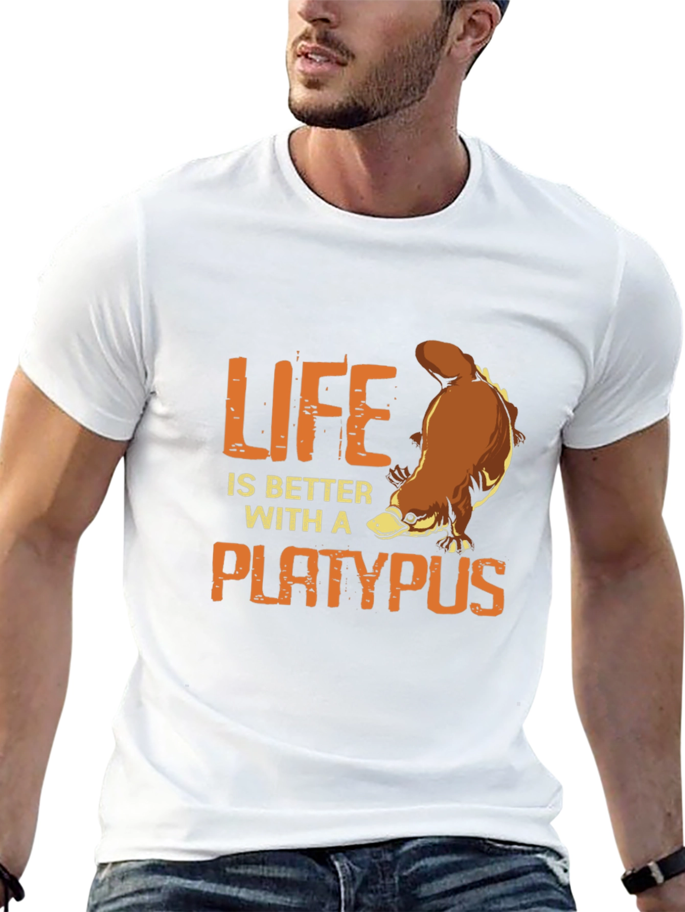Show your love for platypuses with this unique black t-shirt. Featuring a playful graphic of a platypus and the words "Life is Better with a Platypus", this tee is perfect for animal lovers and those with a fun sense of humor. Made from comfortable, breathable fabric, it's ideal for casual wear, running errands, or lounging at home. Stand out from the crowd with this eye-catching design that expresses your unique personality. A great conversation starter and a fun addition to any wardrobe.