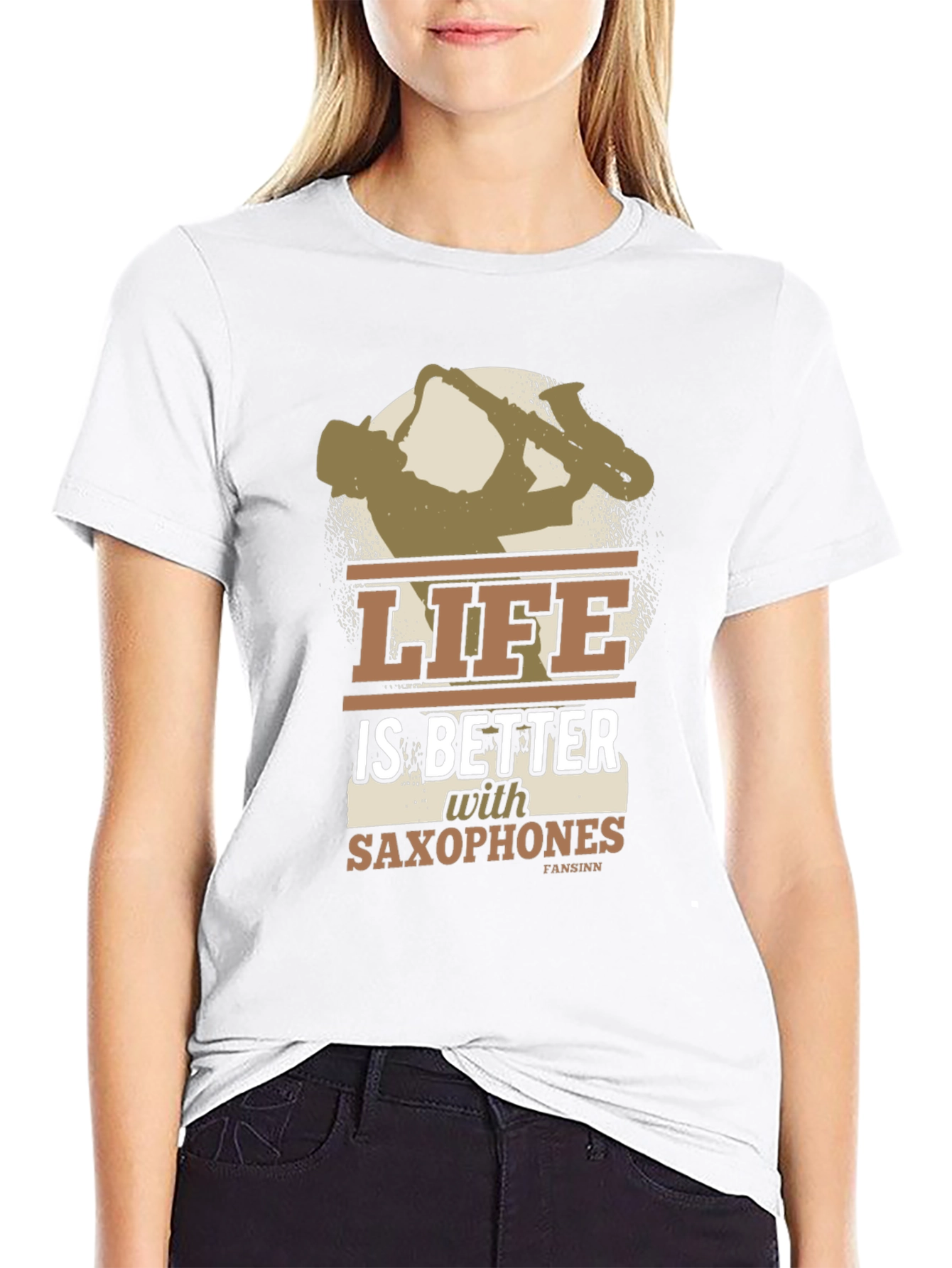 Show your love for music with this unique "Life is Better with Saxophones" t-shirt! This stylish black tee features a creative design with a silhouette of a saxophonist and bold lettering. Made from comfortable, breathable fabric, it's perfect for casual wear, music events, or as a gift for the saxophone enthusiast in your life. Express your passion for music and stand out in style with this eye-catching t-shirt. Get yours today and let the world know that life truly is better with saxophones!