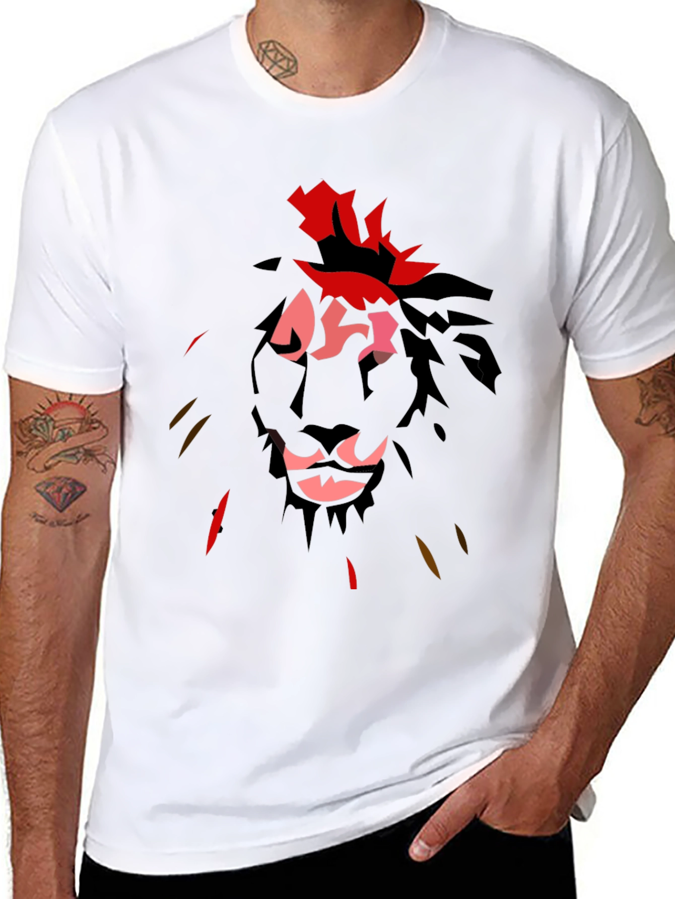 Make a statement with this eye-catching men's black t-shirt! Featuring a bold, artistic lion graphic design in shades of red, pink, and black, this tee is perfect for adding a touch of edgy style to your wardrobe. The abstract lion design is unique and modern, making this shirt a standout piece. Made from a comfortable and breathable fabric, it's ideal for everyday wear. Whether you're hitting the streets, hanging out with friends, or just relaxing at home, this t-shirt offers both style and comfort. Its versatile design makes it easy to pair with jeans, shorts, or joggers for a cool, casual look. Upgrade your style today!