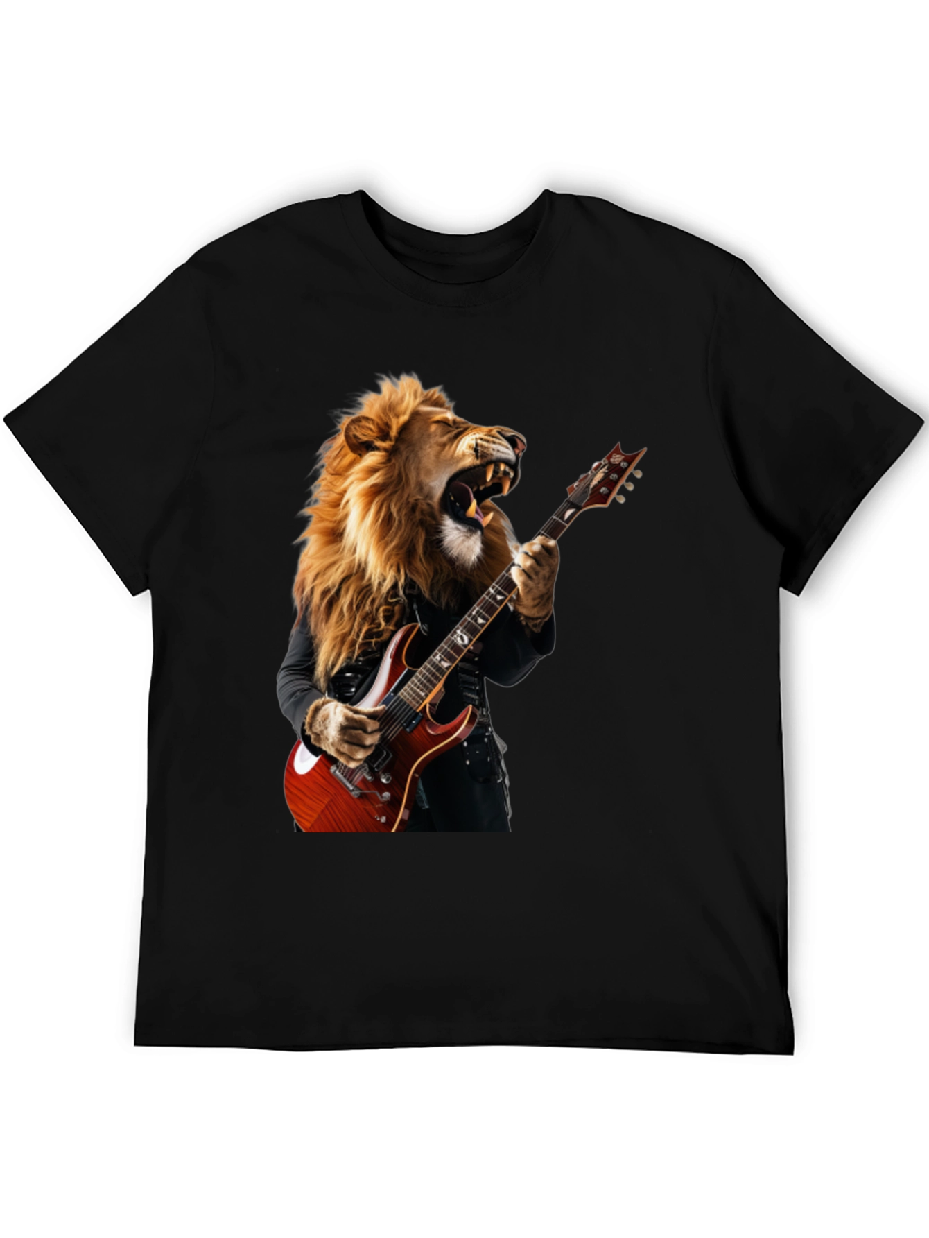 Lion Guitarist Graphic Tee - Rock Star Style T-Shirt