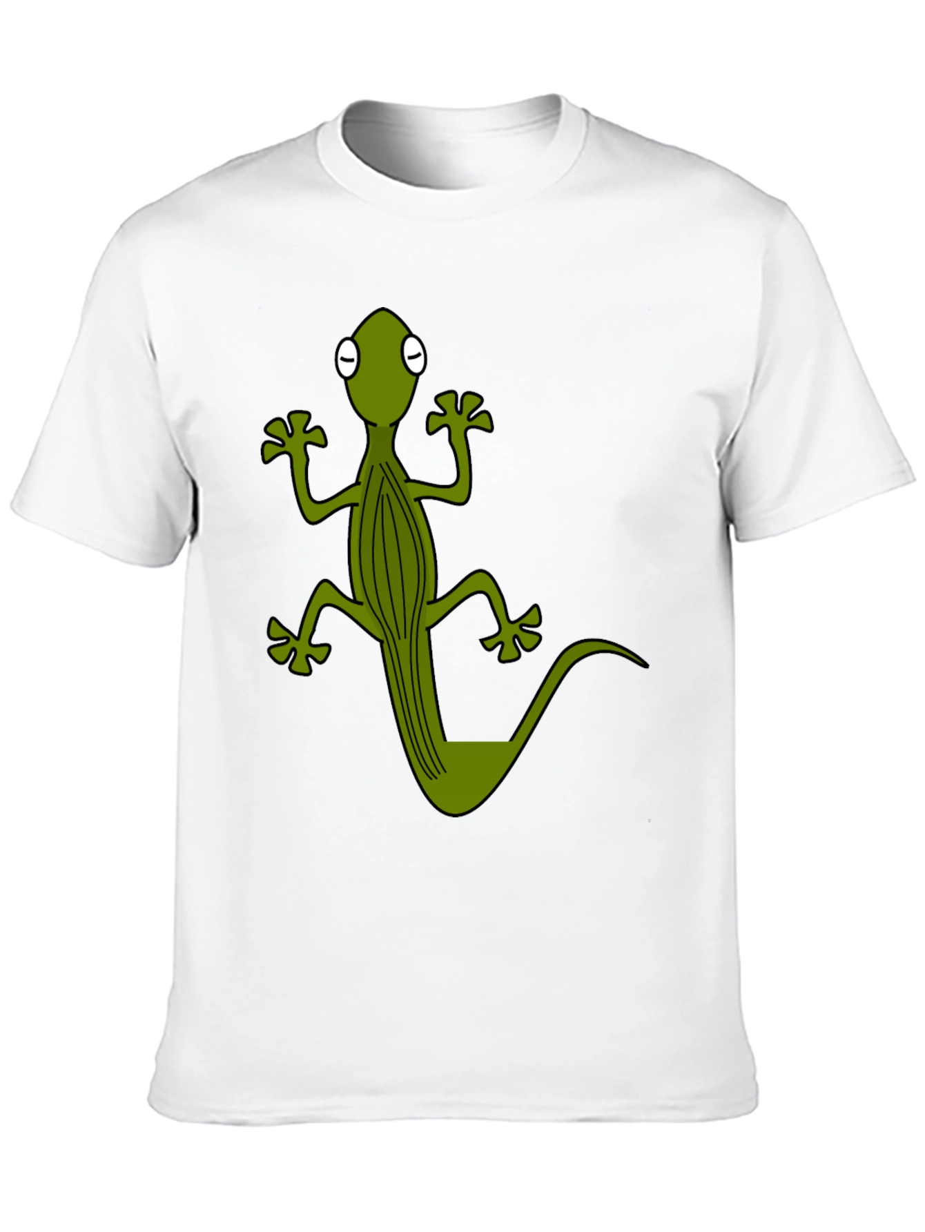 This striking black t-shirt features a fun and unique graphic design. The vibrant green lizard print adds a playful touch, making it a standout piece for casual wear. Made from a comfortable-looking fabric, this tee is perfect for everyday use. The simple yet eye-catching design is sure to be a conversation starter. Ideal for those who appreciate quirky fashion and want to add a touch of personality to their wardrobe. Whether you're heading out with friends or simply relaxing at home, this lizard graphic t-shirt is a comfortable and stylish choice.