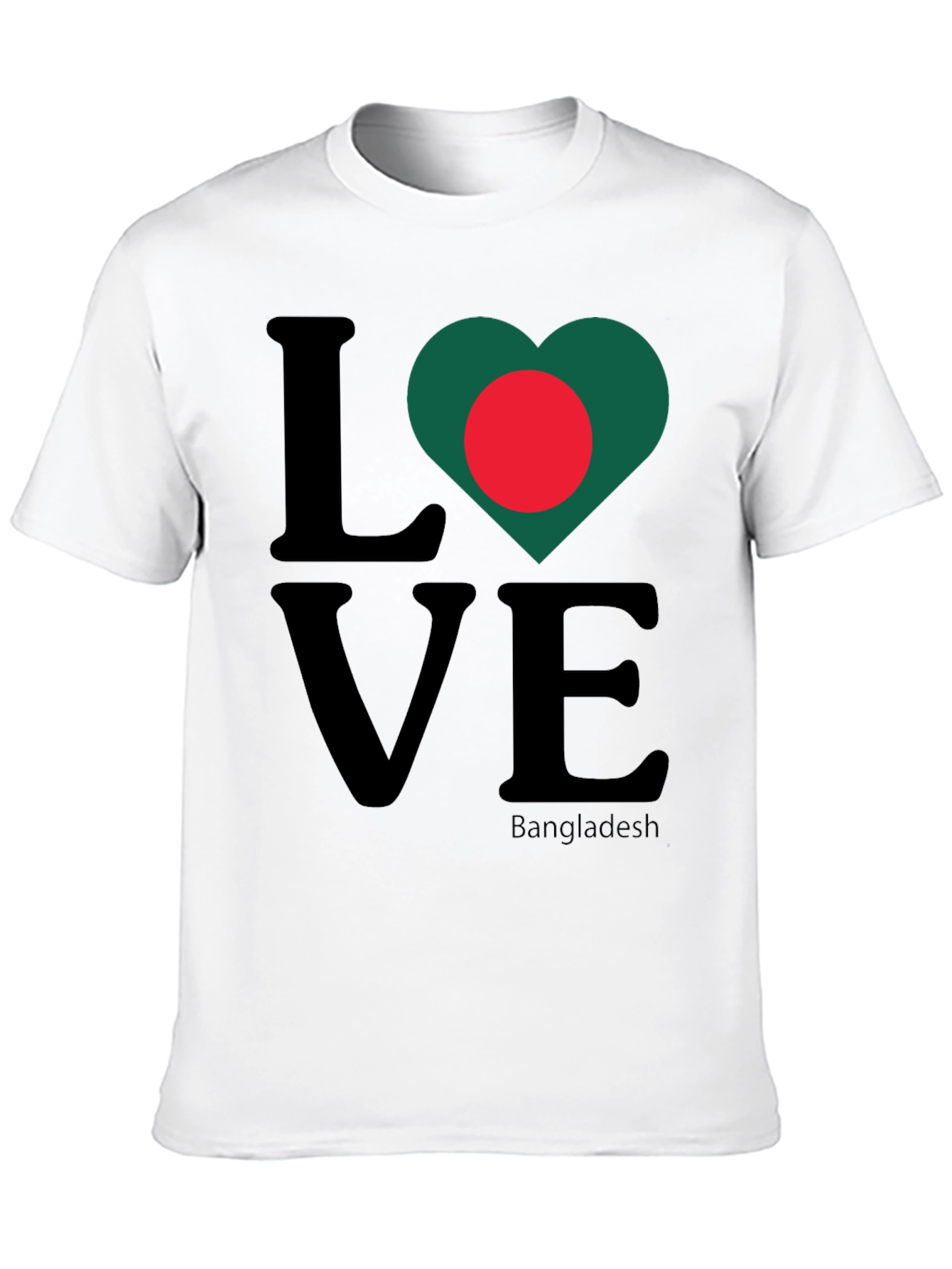 Show your love for Bangladesh with this stylish black graphic t-shirt. The design features the word "LOVE" with the heart symbol cleverly incorporating the Bangladesh flag. Made from comfortable material, this shirt is perfect for casual wear, sporting events, or as a thoughtful gift for someone who cherishes Bangladesh. Let your passion shine with this unique tee! It is suitable for everyday wear, outings with friends, or as a statement piece to express your cultural pride. The sleek design ensures you'll look fashionable while celebrating your love for Bangladesh. Grab yours today and wear your heart on your sleeve!