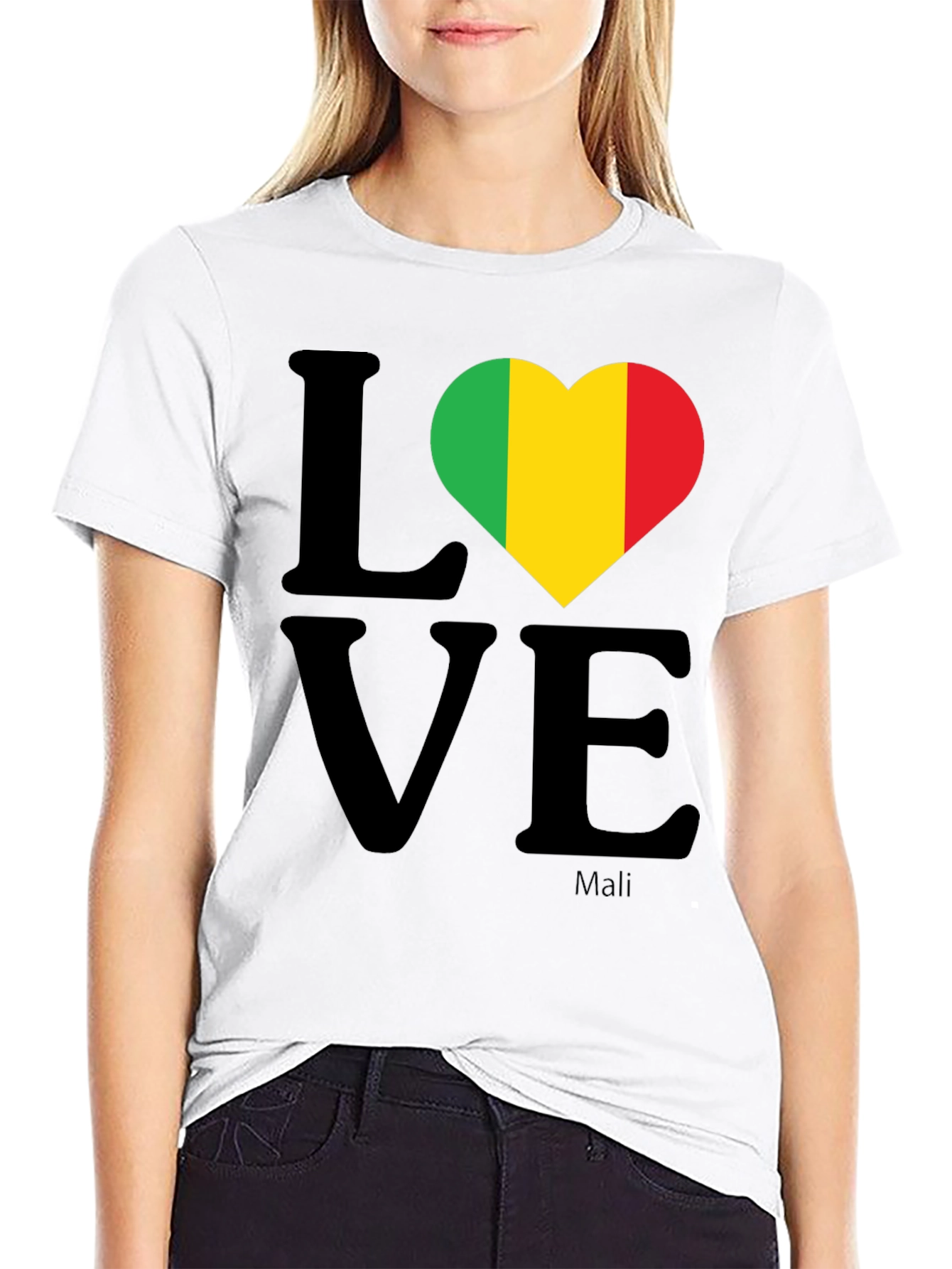 Show your love for Mali with this stylish black t-shirt. Featuring a bold "LOVE" design with the heart replaced by the Mali flag, this shirt is perfect for everyday wear. The design features the green, yellow, and red colors of the Malian flag. Made from a soft and comfortable fabric, this tee is a great way to represent your Malian pride. Whether you're at a cultural event, sporting event, or just hanging out, this t-shirt will make a statement. A must-have for Malians and Mali enthusiasts alike! Get yours today and showcase your connection to Mali.