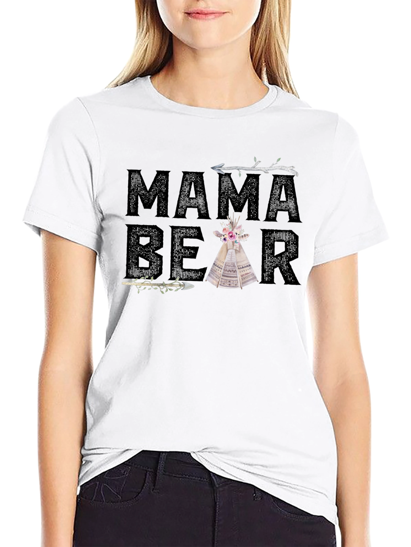 Embrace your inner mama bear with this stylish black tee! Featuring a trendy boho tribal design, the graphic showcases "Mama Bear" text complemented by elegant arrows and a charming tipi illustration. The design elements create a unique blend of fierce motherhood and free-spirited style. Perfect for casual wear or as a thoughtful gift for the special mama in your life. This comfy tee offers both comfort and a standout fashion statement. Wear your mama bear badge with pride!