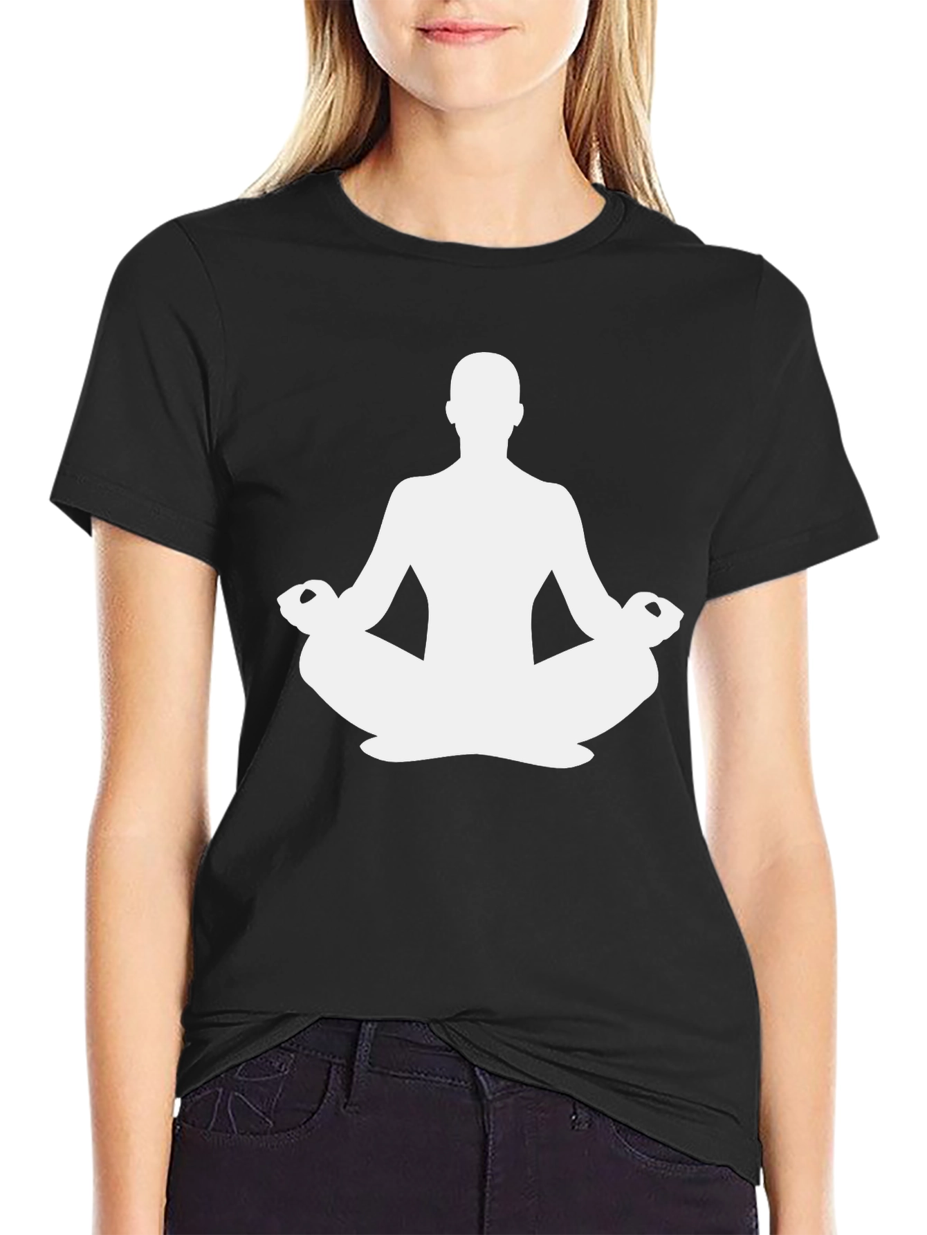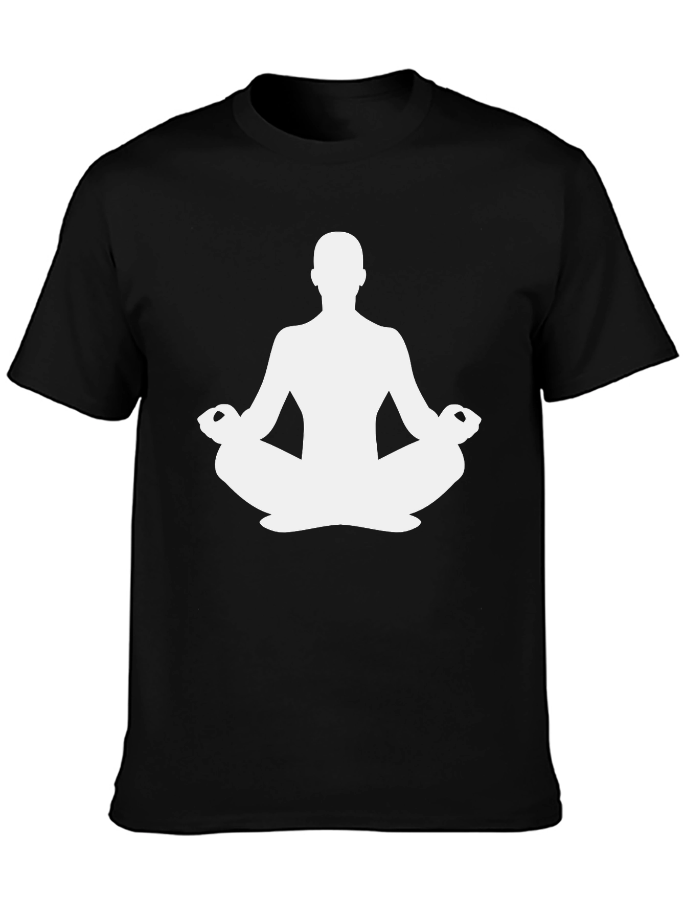 Find inner peace with this unique black graphic tee. The shirt features a striking white silhouette of a person in a meditative lotus position, perfect for yoga enthusiasts, mindfulness practitioners, or anyone seeking a touch of zen in their wardrobe. Crafted from soft and breathable cotton, this tee offers both comfort and style, making it ideal for everyday wear. Pair it with jeans or shorts for a casual look, or dress it up with a blazer for a more sophisticated style. Show off your mindful side with this standout piece!