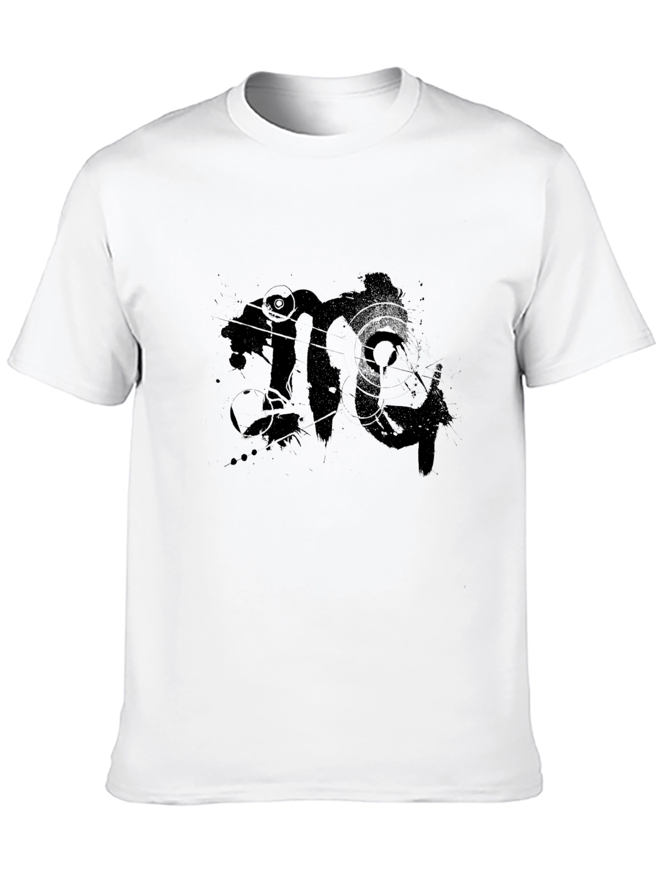 This classic men's t-shirt features a sleek black color and a comfortable crew neck design. The shirt is made from what appears to be soft, breathable cotton, perfect for everyday wear. A distinctive, dark graphic is emblazoned on the front, lending an edgy, artistic flair to the garment. Ideal for casual outings, relaxed weekends, or layering under a jacket. Express your unique style with this eye-catching and versatile tee. Easily paired with jeans, shorts, or chinos for a variety of stylish looks.