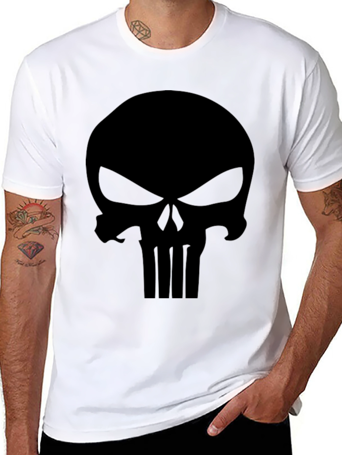 Show off your dark side with this bold men's graphic tee. The shirt features a large, solid black Punisher skull emblem emblazoned across the chest, making a powerful statement. Crafted from a soft and breathable fabric, this tee offers all-day comfort and durability. The classic crew neck and short sleeve design create a versatile style that's perfect for casual outings, comic conventions, or simply lounging at home. Pair it with jeans or shorts for an effortlessly cool look. A must-have for fans of the iconic anti-hero. Get ready to make a statement!